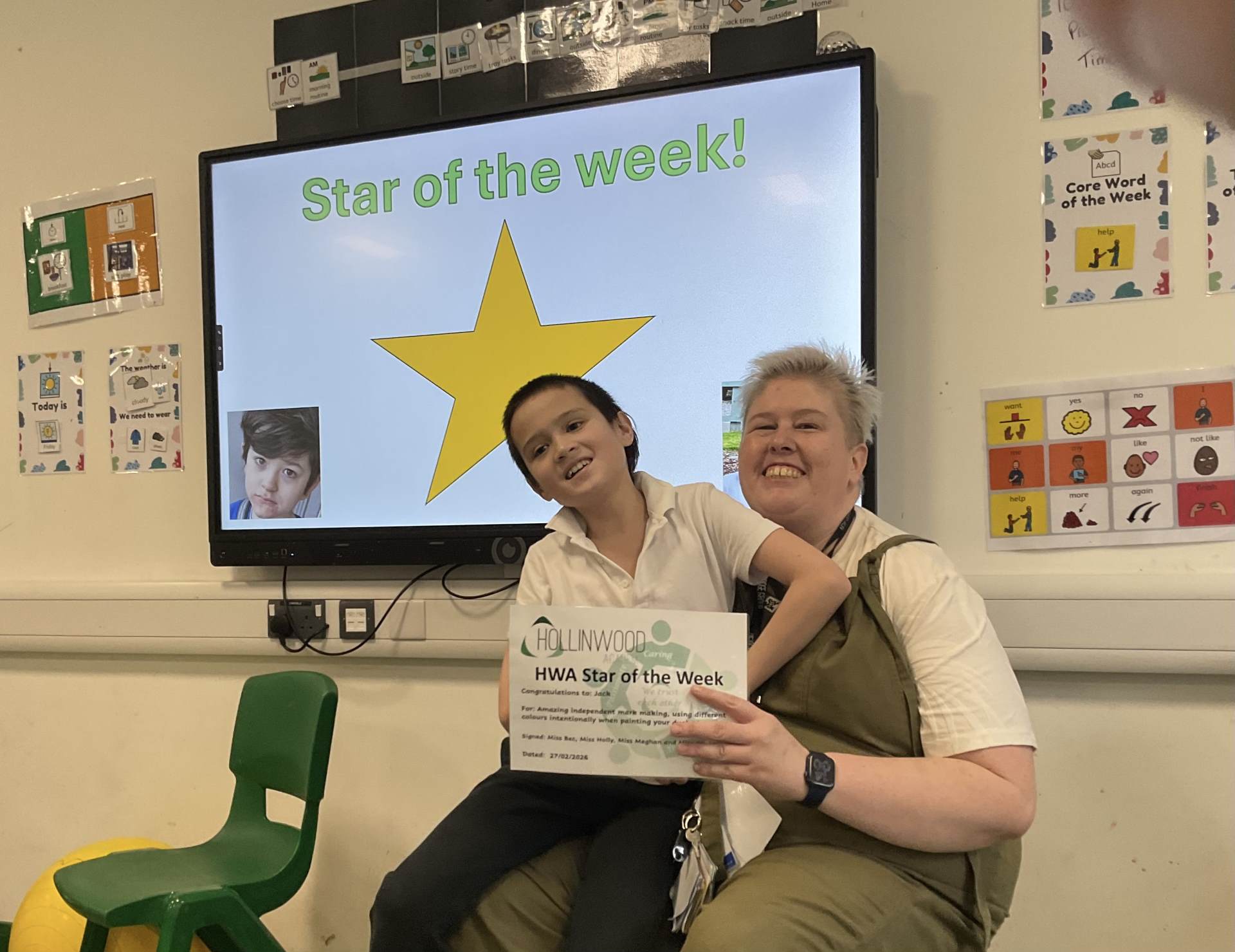Mrs Bailey’s HWA We Are Creative goes to William for using TD Snap to build a 3-word sentence to make a request independently. We are so proud of you.