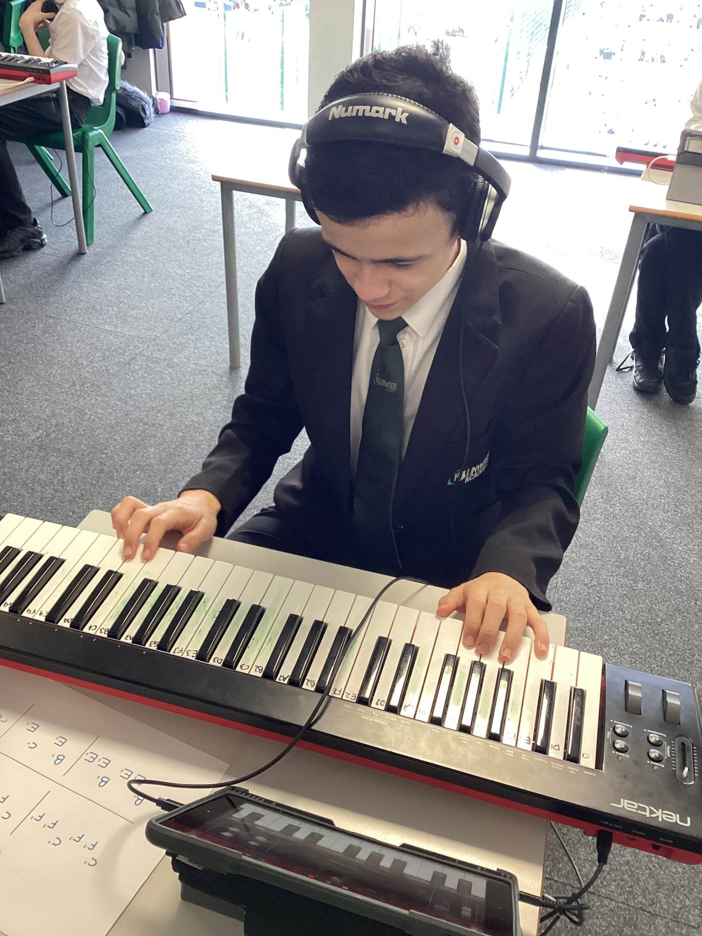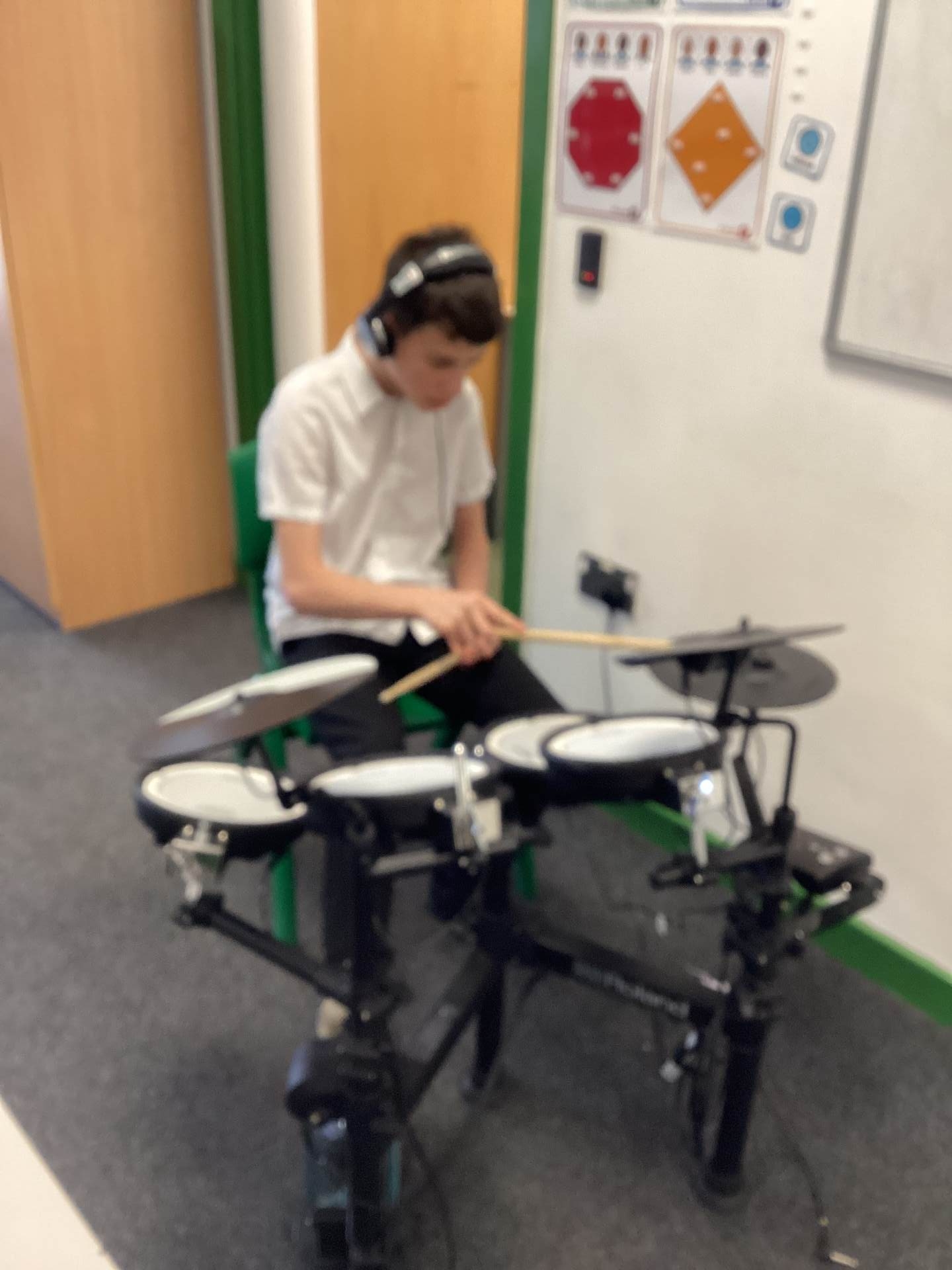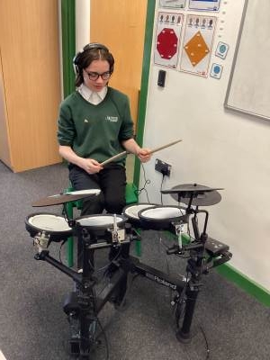 This term in music, our students have been practicing guitar and steadily improving their playing skills, developing confidence in chords and melody. Now, we have moved on to playing the drums. Learning to keep steady beats and explore different rhythms.
