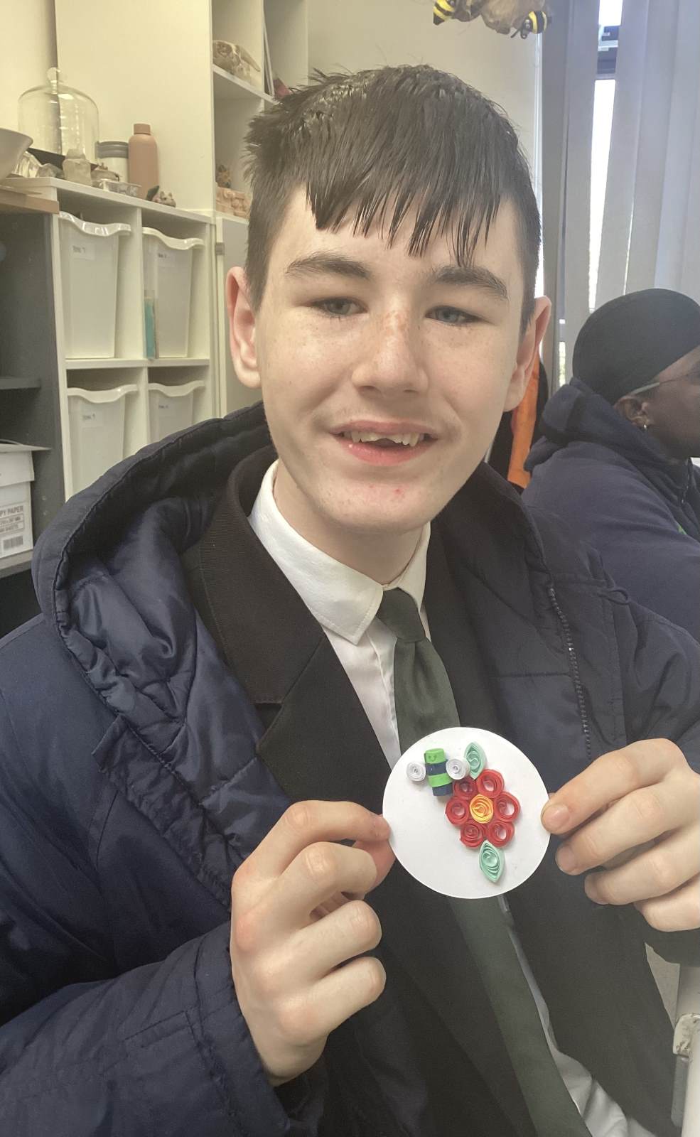 In art we have been doing paper quilling. Students learned the delicate and intricate craft of paper quilling, using quilling tools to roll, shape, and glue strips of paper into creative designs. They developed impressive precision and creativity, making everything from colourful flowers to buzzing bees. We are proud to share that some of their quilled artwork was even submitted to One Love Manchester art showcase. An amazing recognition of their hard work and talent!