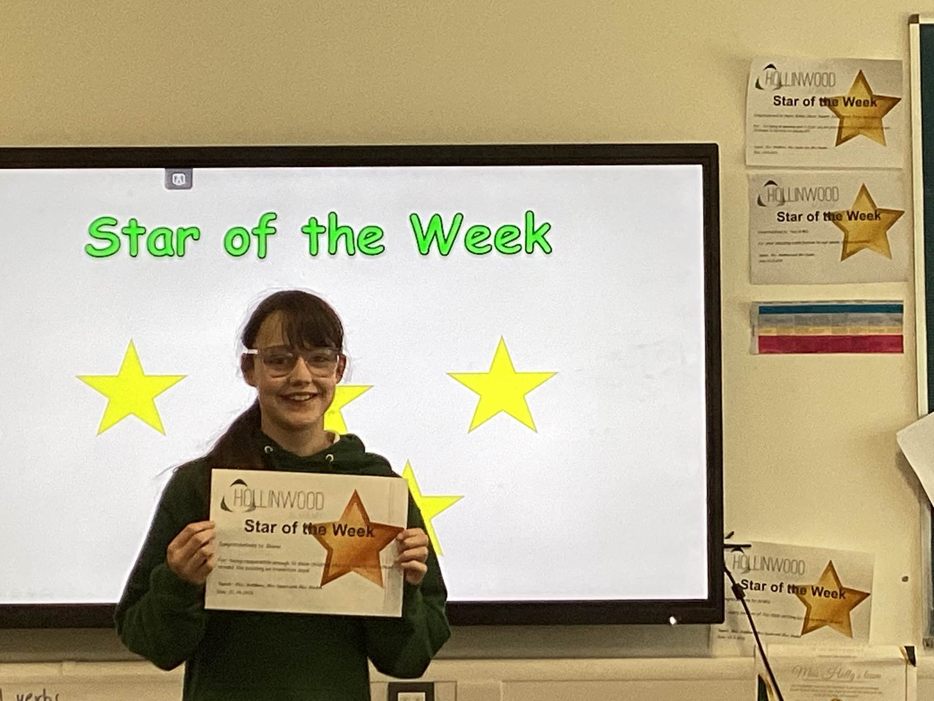 Mrs Matthew’s STAR of the week is for Blaire for being relied on to show new students around the school on transition days.