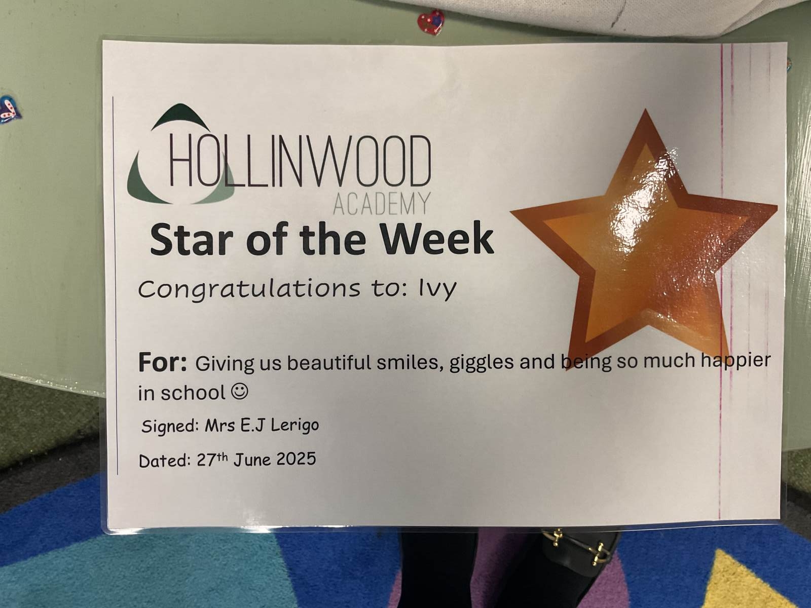 Mrs Lerigo’s STAR of the week is Ivy for Giving us beautiful smiles, giggles and being so much happier in school.