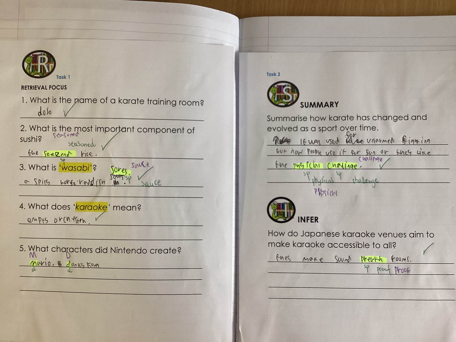 "This week in English, our class has been working through the Reading VIPERS scheme to boost our reading comprehension skills. We focused on Japan and explored the influence of its inventions, such as karate, origami, sushi, karaoke, anime, manga, and video games. The students showcased their understanding through various reading comprehension tasks, and they've been diligently using purple pens to correct misconceptions based on the given feedback.