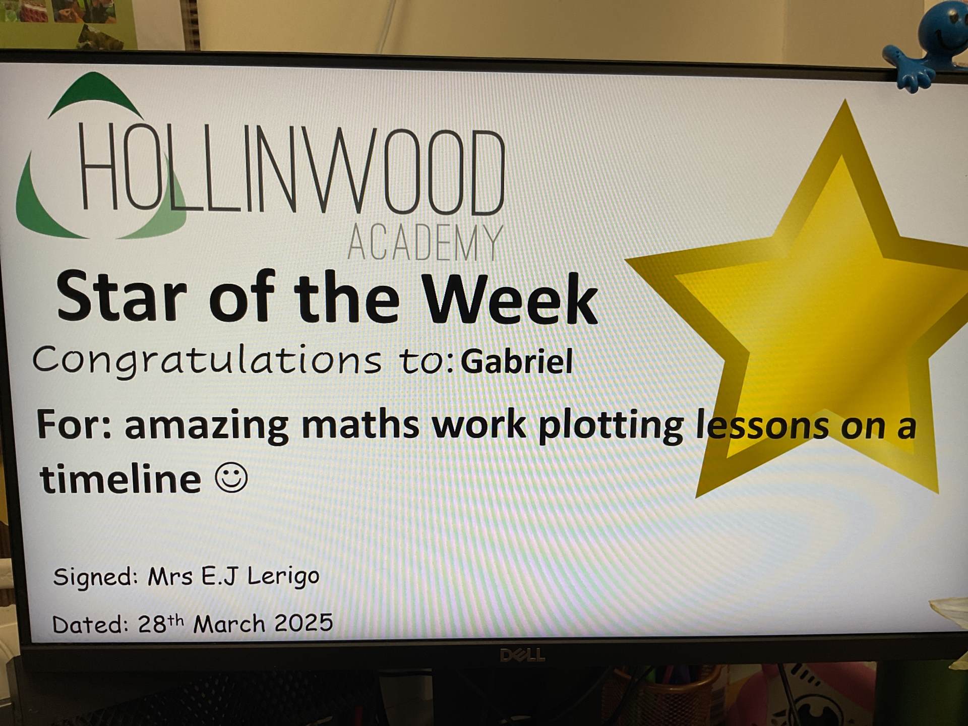 Mrs Lerigo’s HWA We are Creative STAR is Gabriel for amazing maths work plotting lessons on a timeline.