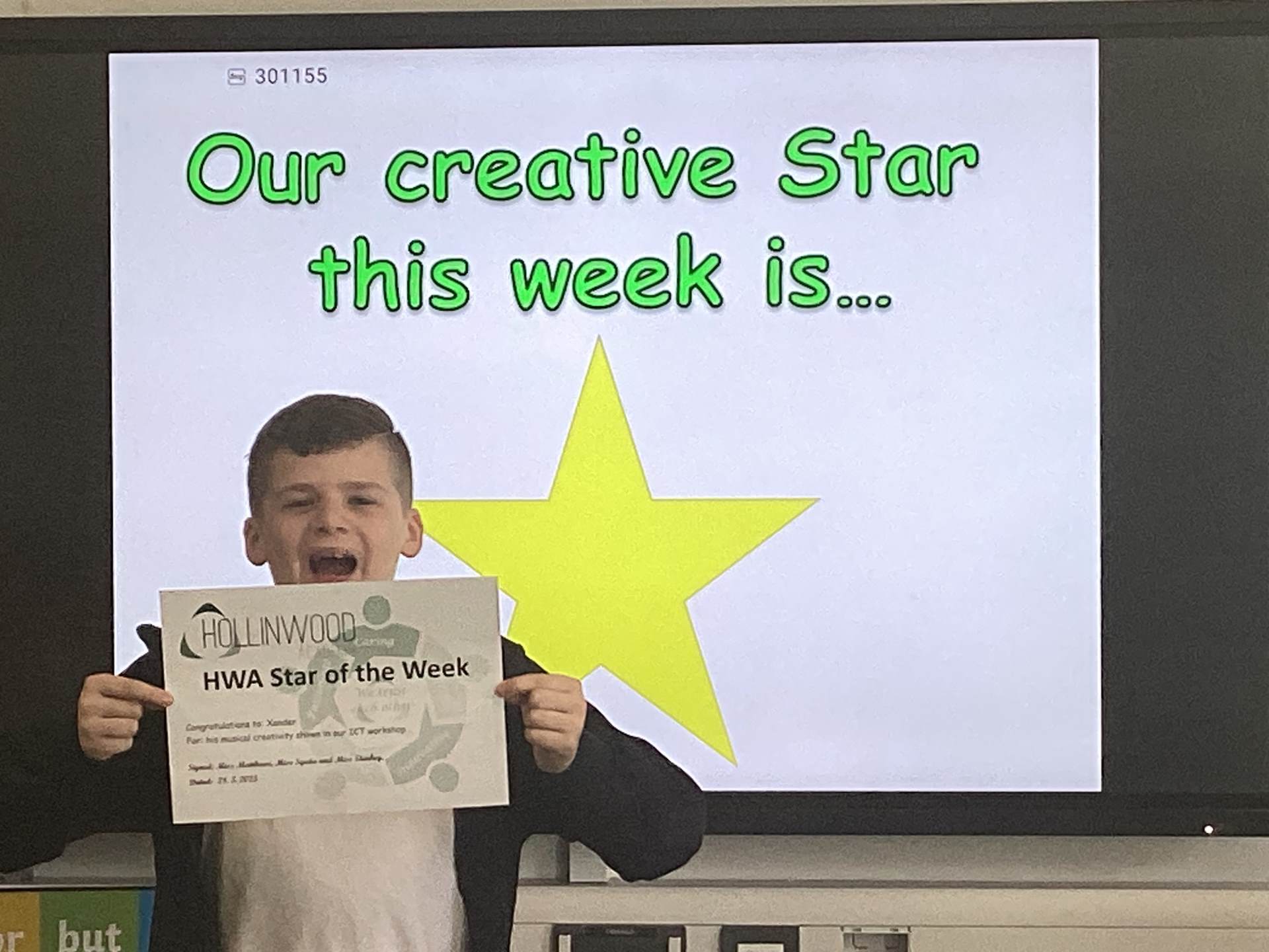 Miss Matthew’s HWA We are Creative STAR is Xander for his creative piece of music in our ICT workshop.