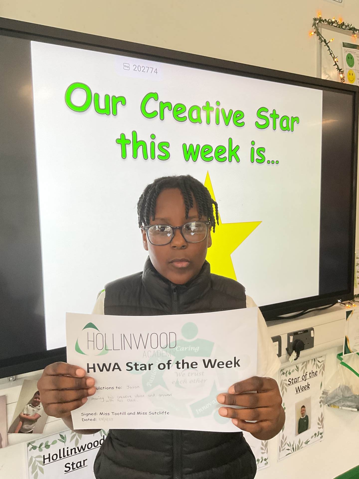 Miss Tootill’s HWA We are Creative STAR is Jason for his creative ideas and sharing them with peers.