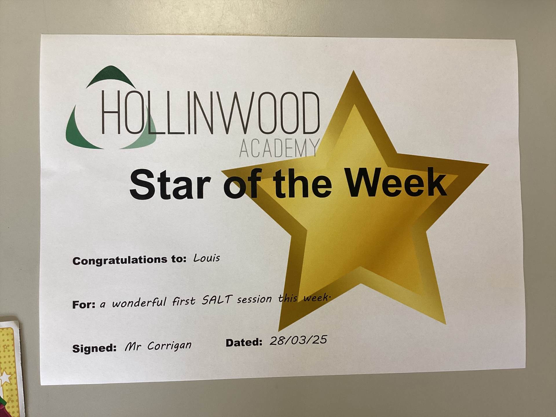 Mr Corrigan’s STAR of the week is Louis for a wonderful first SALT session this week.