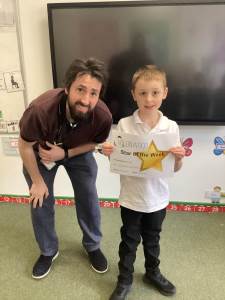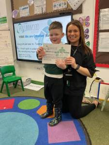 Miss Hulme’s STAR of the week is Henry for a fabulous week in his new school and settling in to class so well.