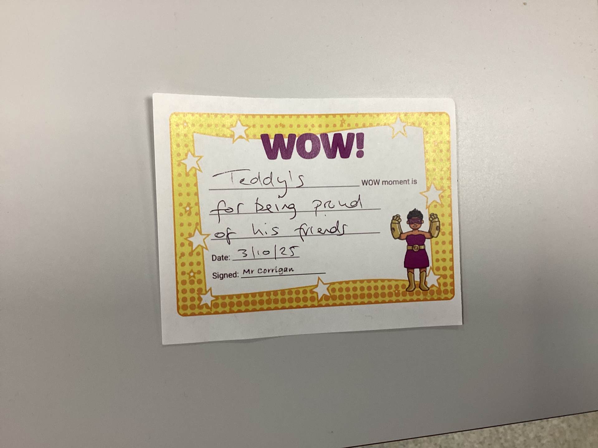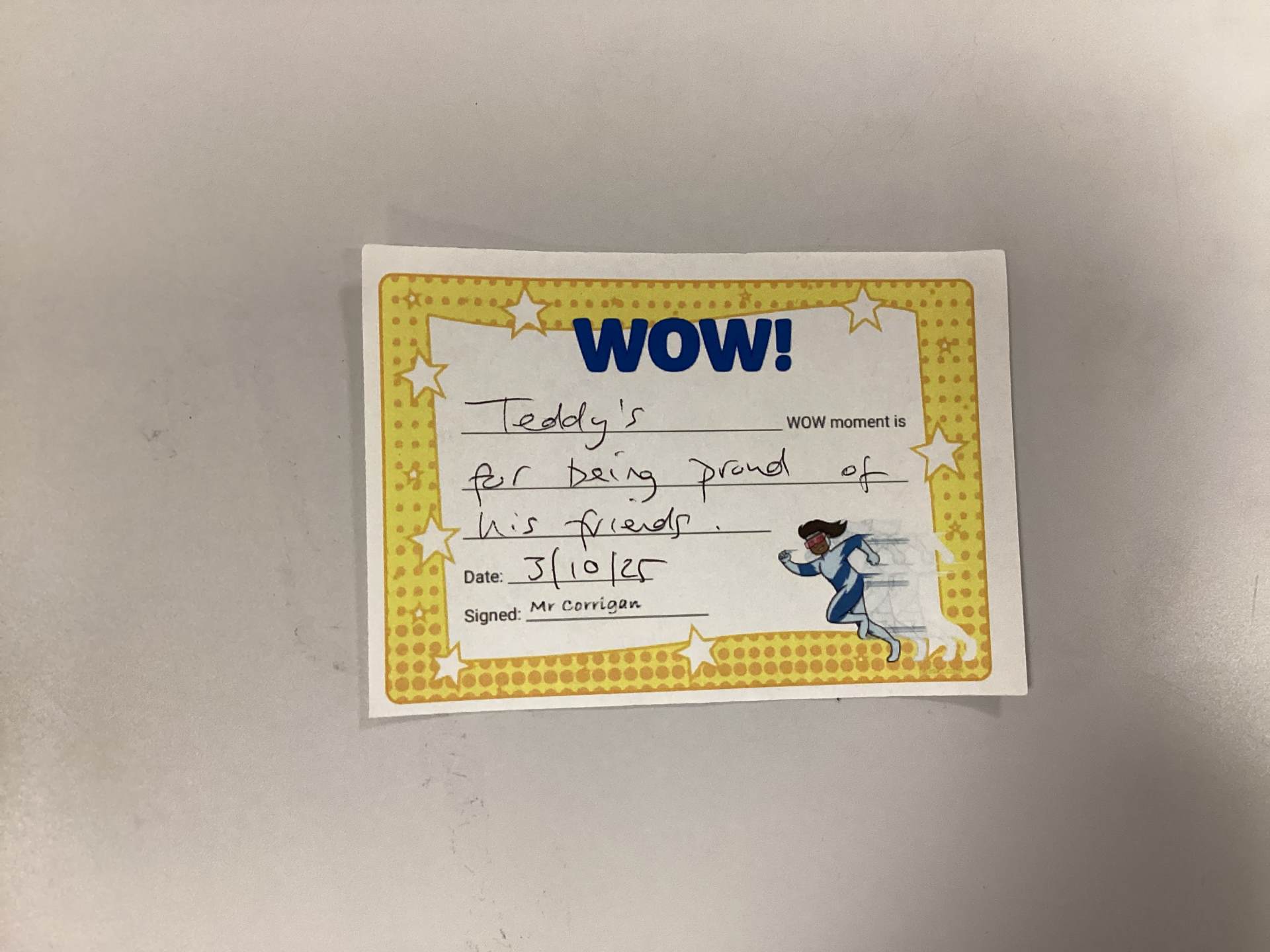 Mr Corrigan’s WOW moments go to Teddy B and Teddy W