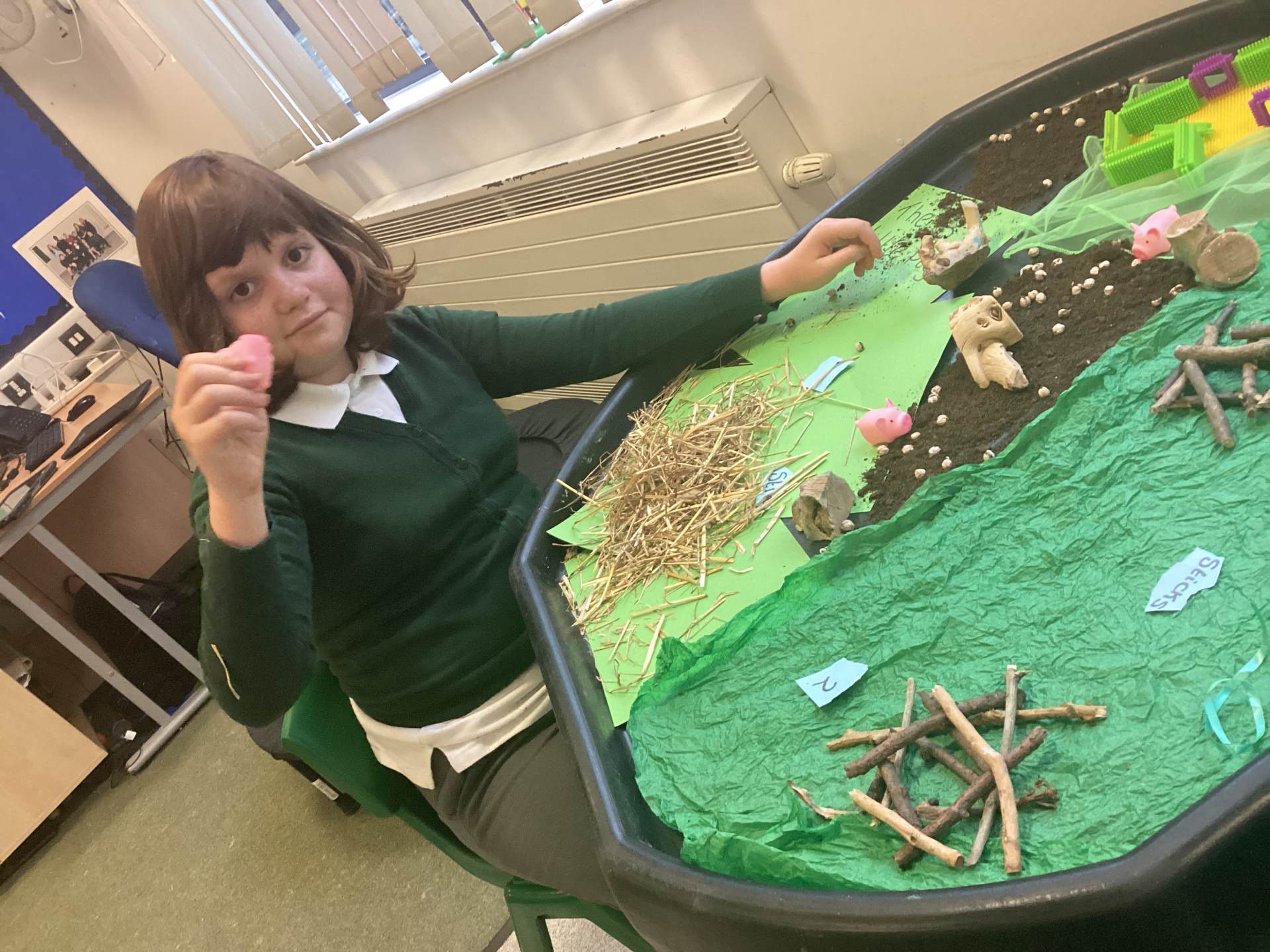 During our sensory story sessions, we employ a multi-sensory approach to learning. Our first story of the term was The Gruffalo. A couple of our favourite activities included making our own chocolate Gruffalo claws, preparing owl ice cream, and using story puppets to retell the tale. We then moved on to Jack and the Beanstalk, where the children enjoyed making the giant’s footsteps, milking Jack’s cow, and exploring the beanstalk. This week, we have started our third book of the term, A Dinosaur That Pooped a Princess. This week's focus has been on The Gingerbread Man and The Three Little Pigs, as the dinosaur encounters them on his way to save the princess. We have had fun exploring ginger-scented cloud dough and retelling the story of the three little pigs using resources from the narrative.
