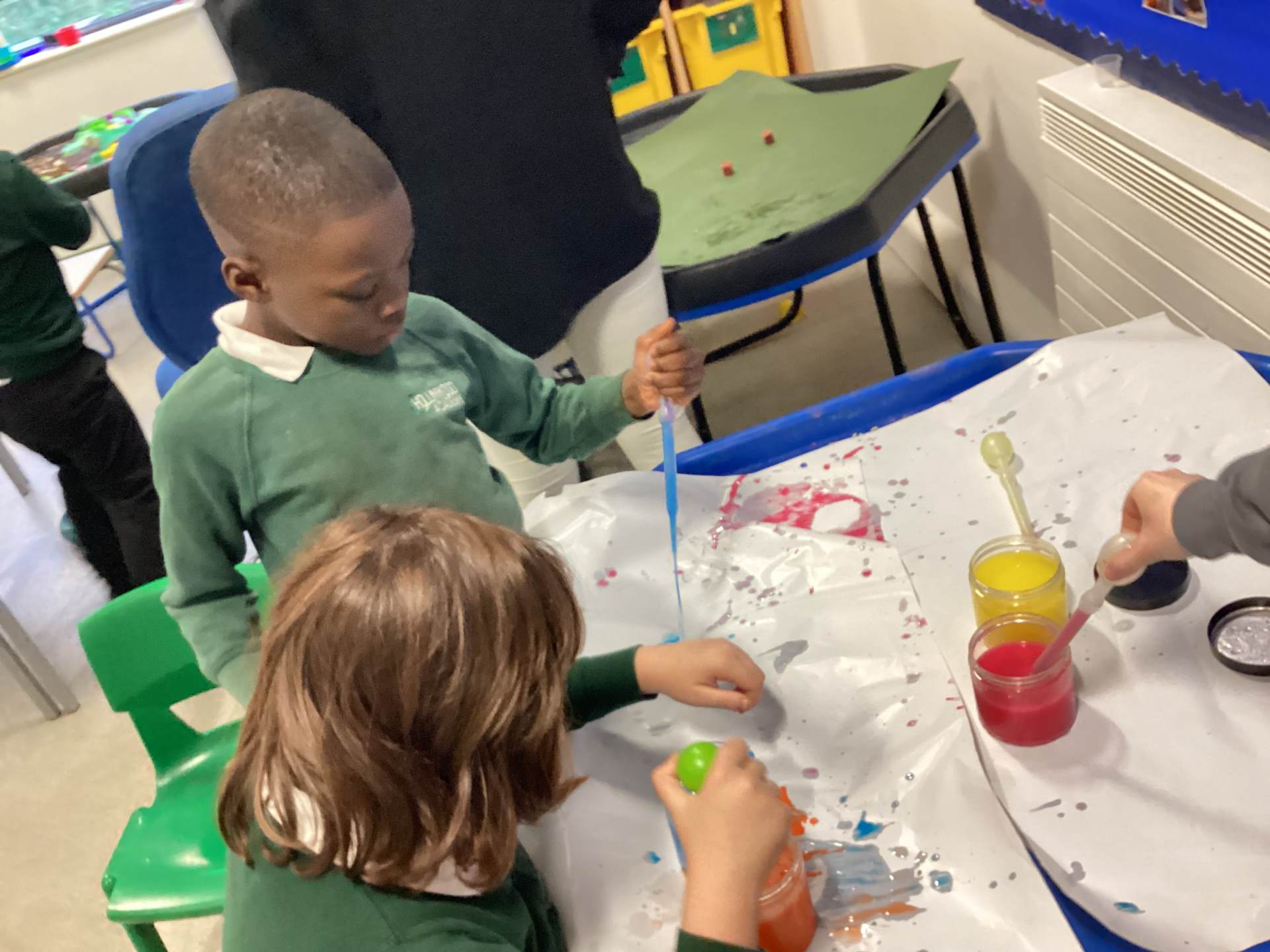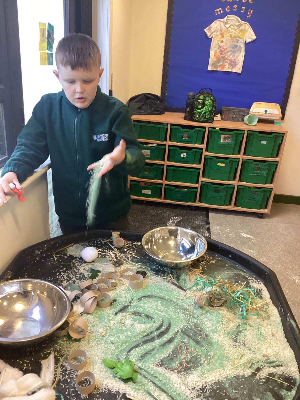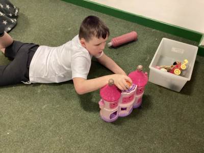 During our curiosity and cause-and-effect sessions, we have six activities available for the children to explore, allowing them to take ownership of their learning by deciding which activities to engage with. As they participate in their chosen activities, staff work on their individual EHCP, SCERTS, and EM targets. There is always a messy play activity, cause-and-effect experience, social interaction, communication session, mark-making opportunity, and regulation activity available. A few of our favourite activities this year have included bowling, floating and sinking water trays, and mark-making with paint.