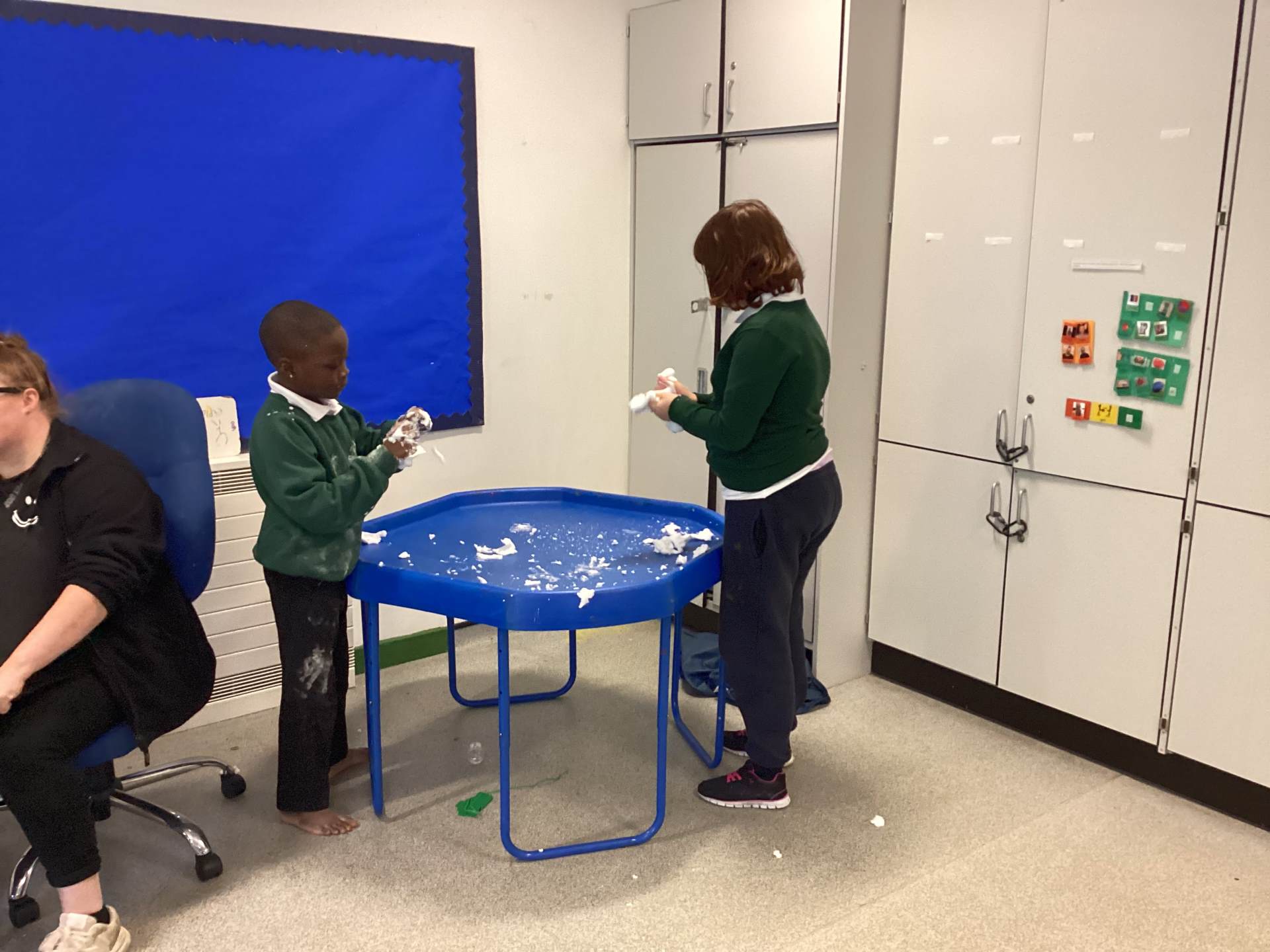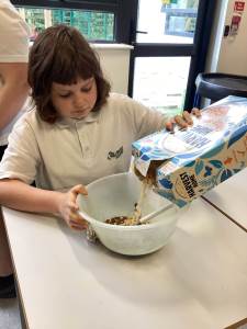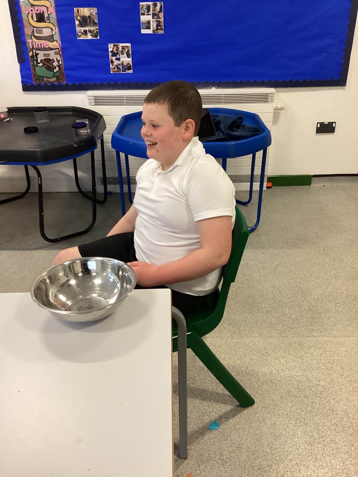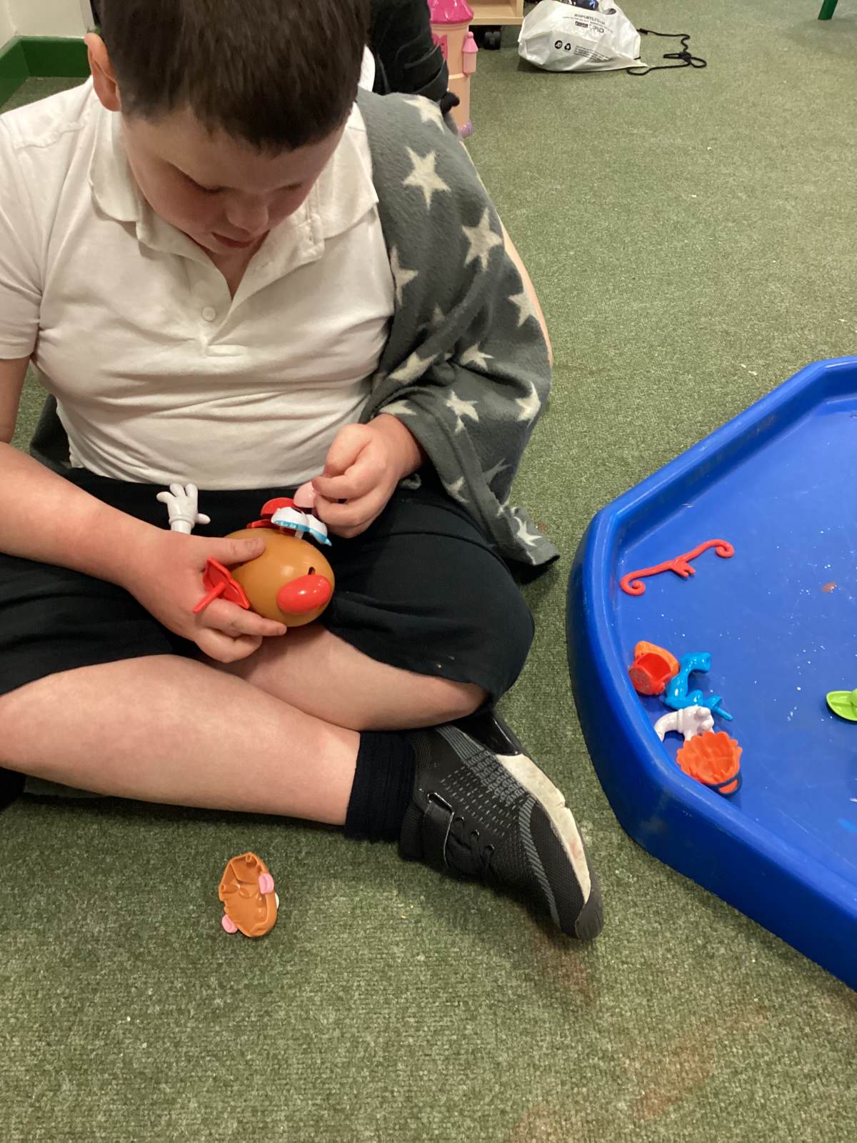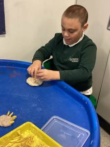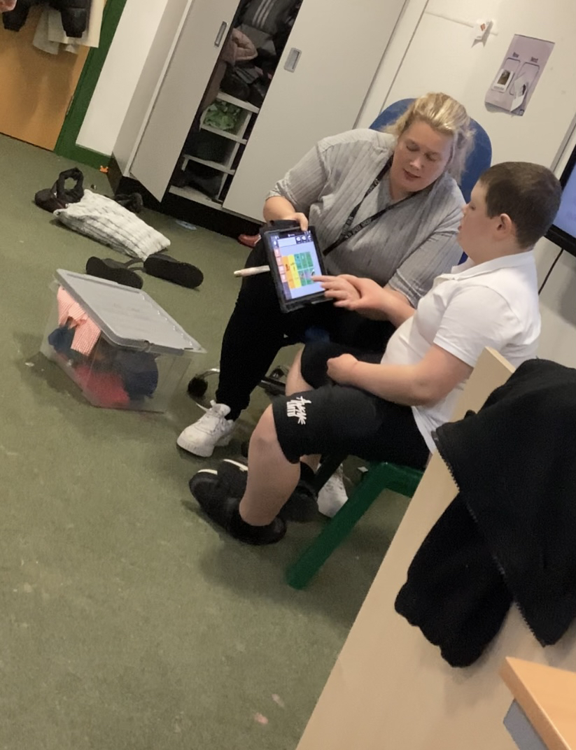 During the school day, we utilise a communication app called TD Snap Core, which is used in various ways, such as requesting breakfast, lunch, and snacks. It is also employed in lessons throughout the day, including communication, music, and magic box activities. During our communication sessions, it is used to request a variety of objects needed to complete tasks; currently, we are learning to use the app to create two to three-word sentences, for example, “Open soil” or “Sophie, open soil.” A few examples of activities we have participated in include making a playdough face, planting magic beans, creating a bear sandwich, and crafting magic wands.