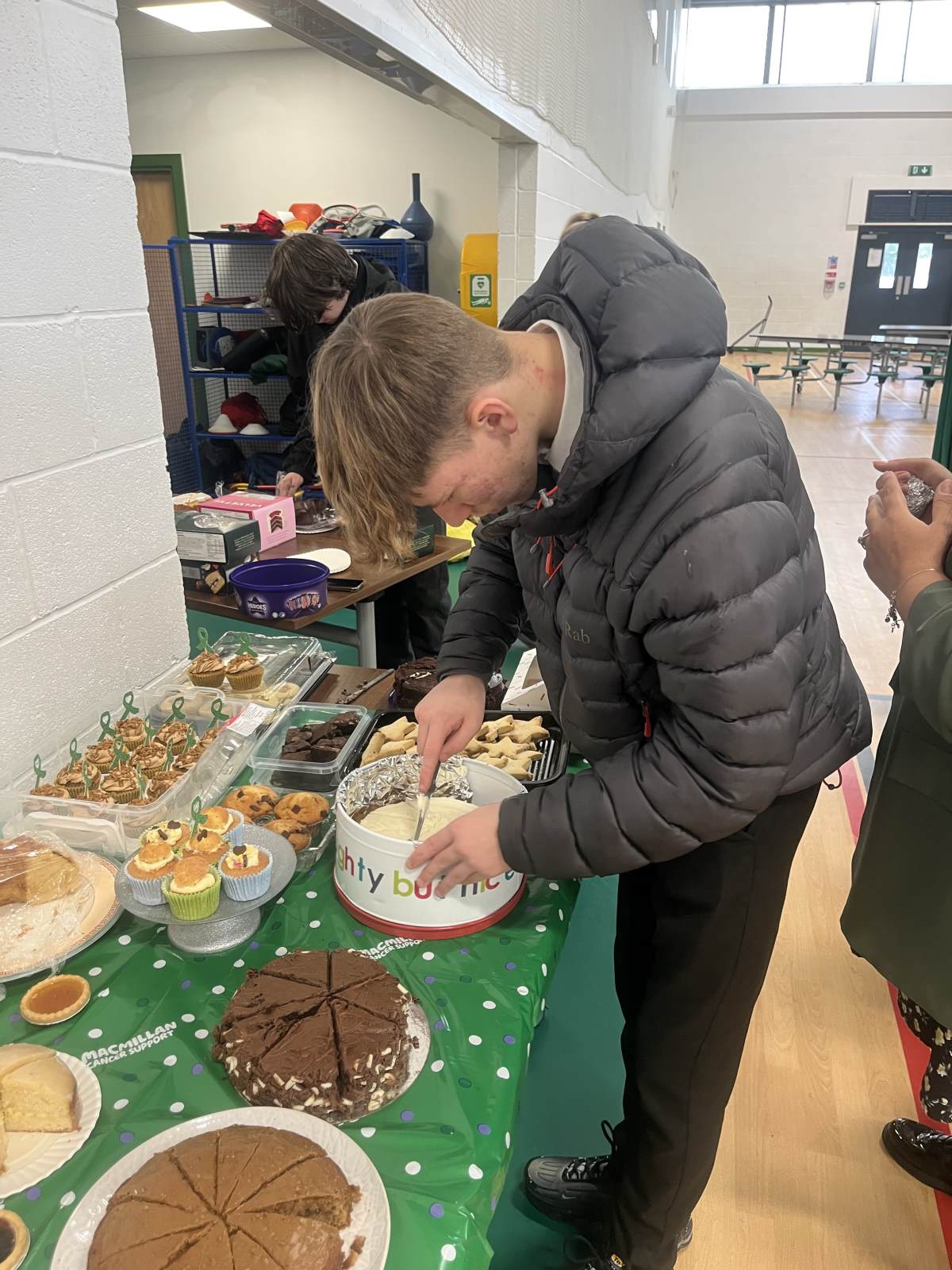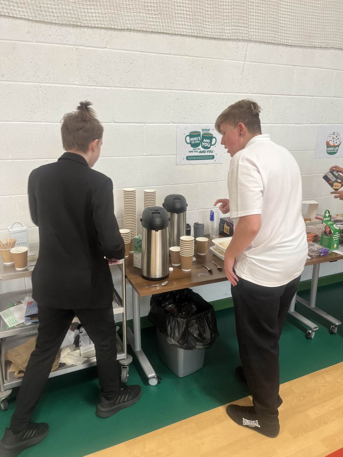 Last week HWA held our annual Macmillan coffee morning, and the vision hub students were asked to support. I was so impressed with how all of them presented themselves throughout the morning and how they addressed parents. Jack and Connor greeted parents and made them cups of tea or coffee while Kaden, Lewis and Prezidente cut the cakes and tempted parents to a slice.