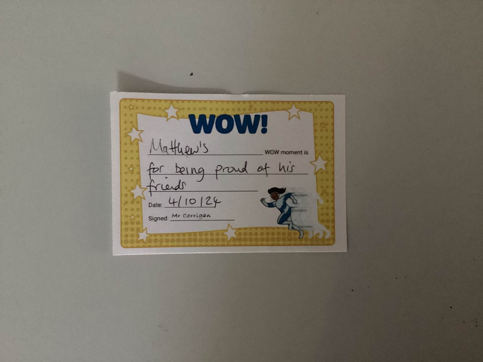Mr Corrigan’s WOW moments go to Simisola and Matthew. Well done!