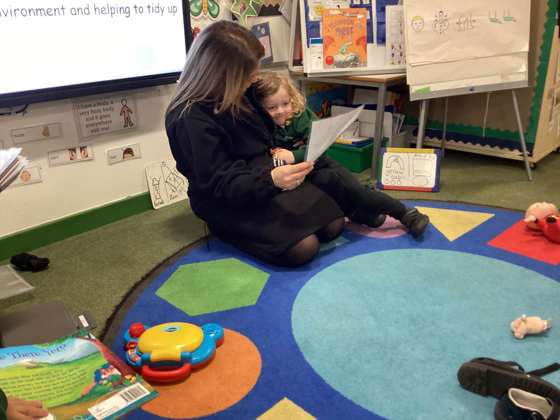 The class has really enjoyed our magic box sessions so far this year. During these sessions, the children come to the front of the class one at a time and, using TD Snap, request a sensory object from the box, again using either a two or three-part sentence. Bubbles seem to be the biggest hit! Once the child has requested their desired object, they can explore it while the staff in the room sing a song linked to that object. After the song has finished, the child returns the object to the magic box.