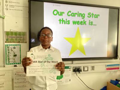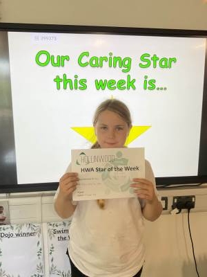 Miss Pietraszewska’s HWA We are Caring STAR is Alfie for always being a lovely friend to his peers and looking after everyone. Well done Alfie!