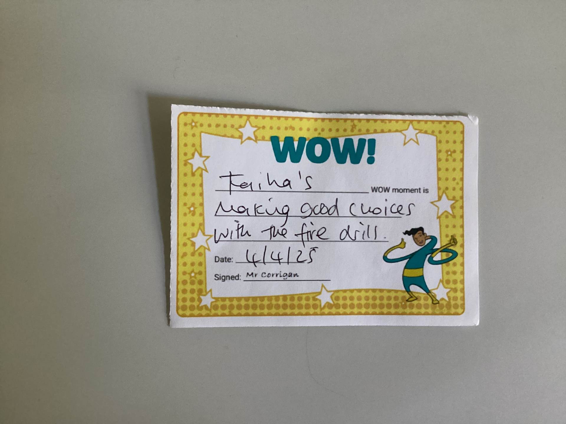 Mr Corrigan’s WOW moments go to the whole class, Simisola and Faiha. Well done!