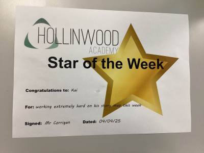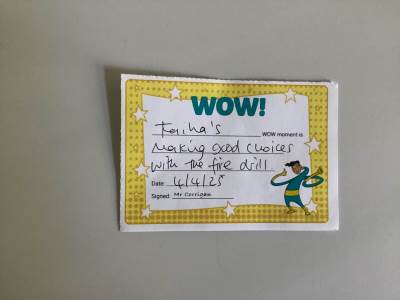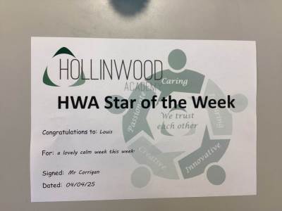Mrs Davies’ STAR of the week is Maleek for having an excellent end to the week and accepting help from teachers to keep regulated during the fire alarm.