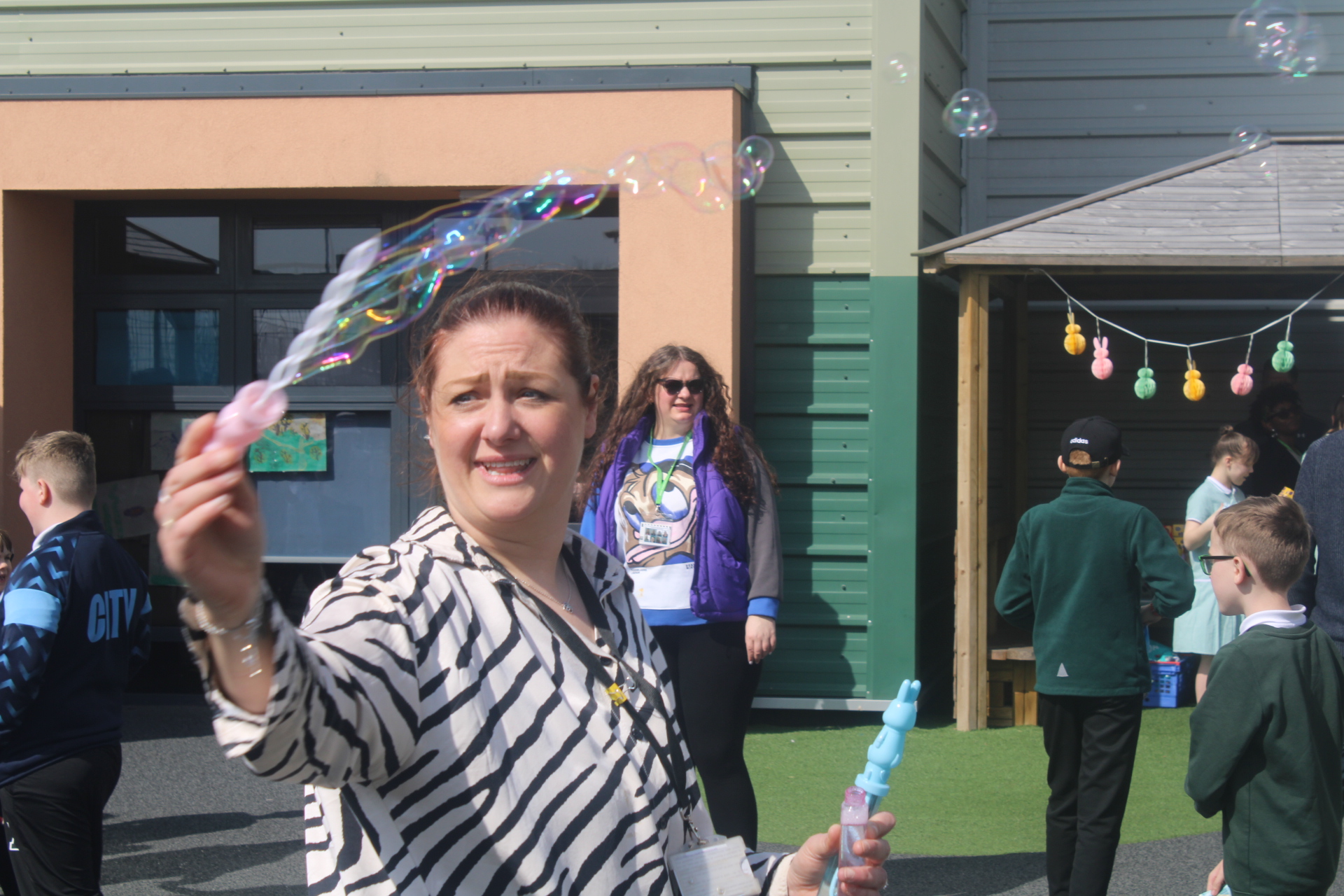 Today, the whole school participated in our first Easter fair to raise funds for our new school bus. We had events like the egg and spoon race, soak the teacher and an egg decorating competition, as well as an egg tombola egg hunt and the ice cream van. A fabulous time was had by all. Thank you to all our children, young people, staff and parents who help make this possible.