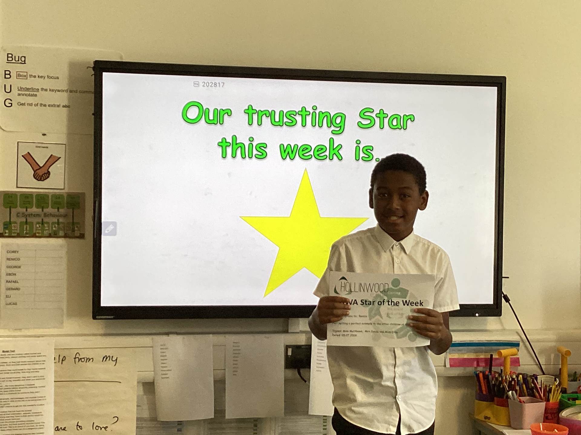 Miss Boothroyd and Miss McDonald’s STAR of the week is Shane for always making the right choice and trying his best.