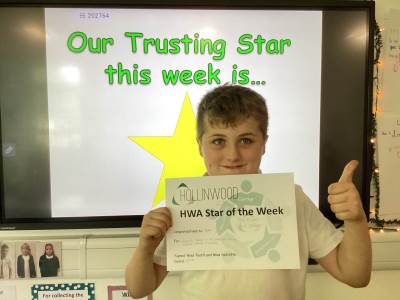 Miss Tootill’s HWA We Trust STAR is Dylan for working hard in all his lesson and having a positive attitude in school.