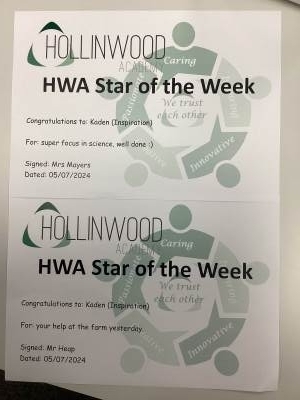 Miss Oakley’s STARs of the week are the whole class for a great trip to the farm, we are so proud of you all.