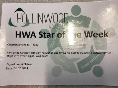 Miss Pietraszewska’s HWA We Trust STAR is Teddy for doing his best with self-regulation and trying his best to maintain positive relationships with other pupils. Well done!