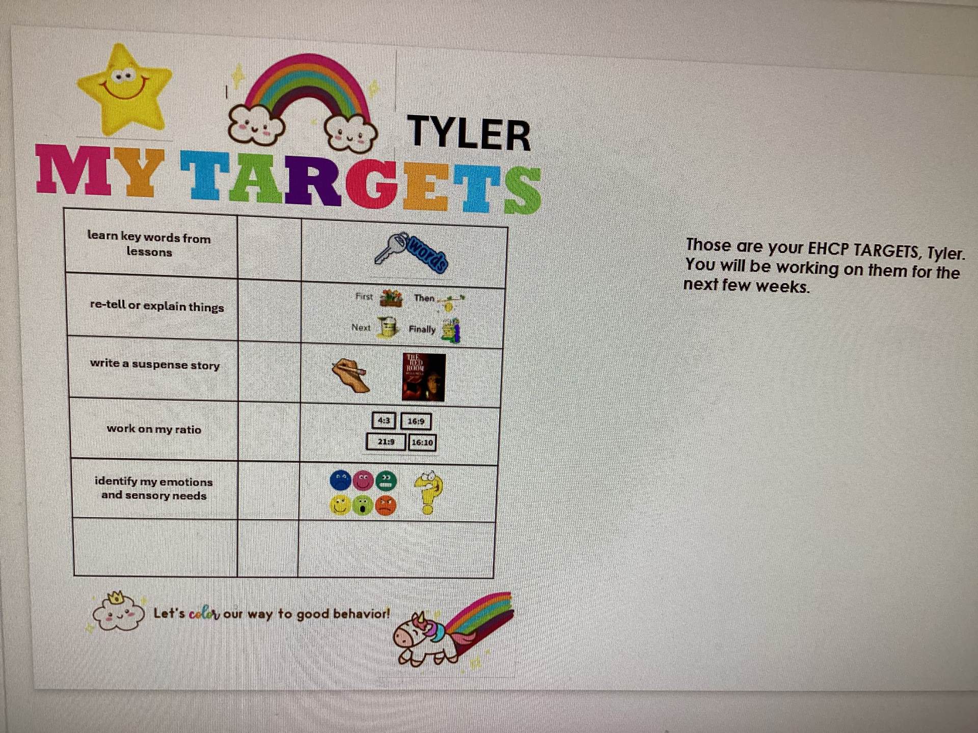 In our EHCP lessons, we concentrated on personal targets, and I am proud to see everyone making steady progress. The dedication and hard work demonstrated by our class this week is truly commendable! "