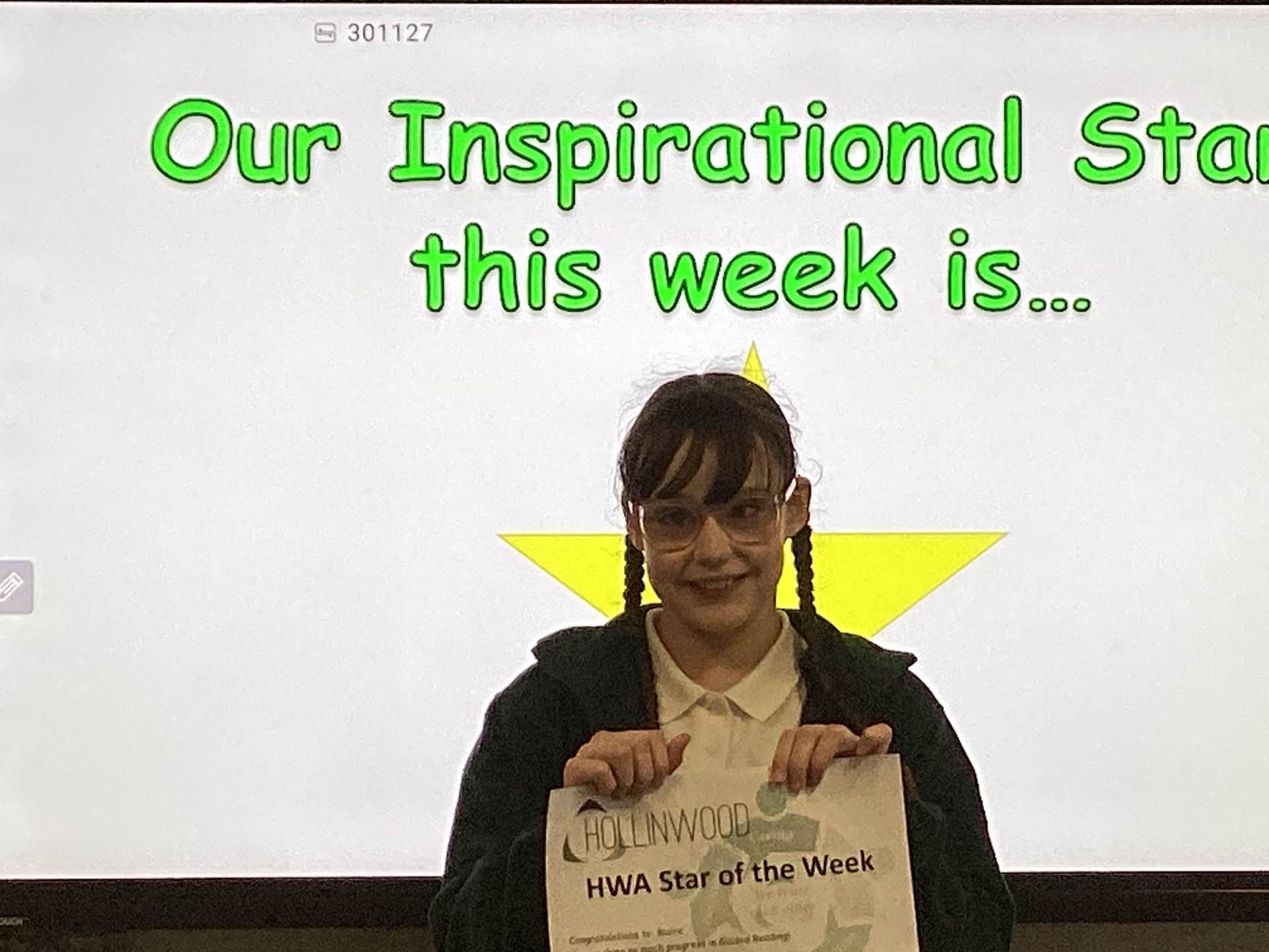 Miss Matthew’s HWA We are Inspiring STAR is Blaire for making lots of progress in Guided Reading and moving up a stage.