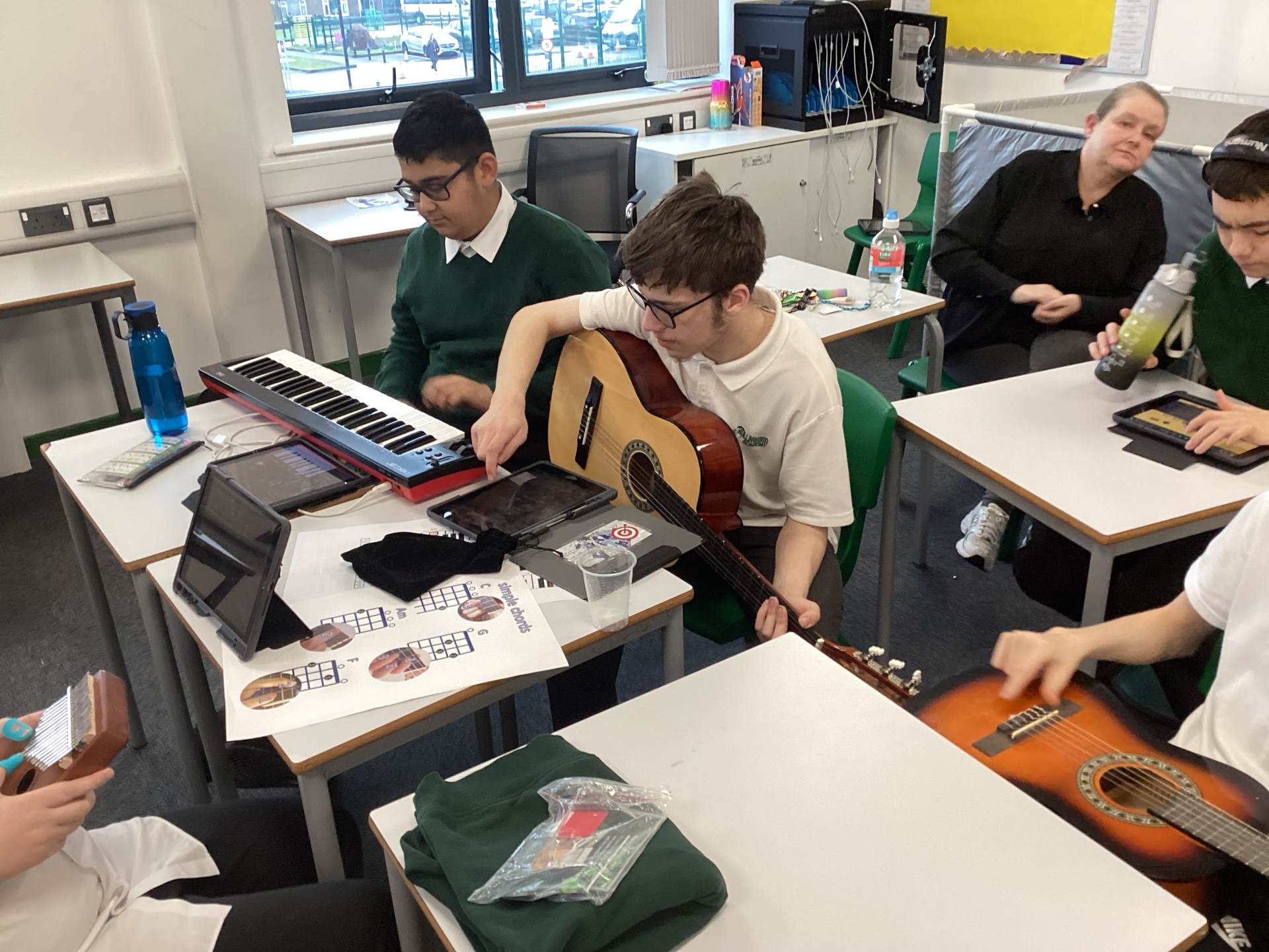 Y10 and Y11 option groups have been working hard towards their Arts Award qualification, teaching skills to other pupils and Teaching Assistants in the class. The have been performing as small groups and really developing their instrumental skills. Congratulations to the students that already have college placements to study music further – very inspiring for other students to see!