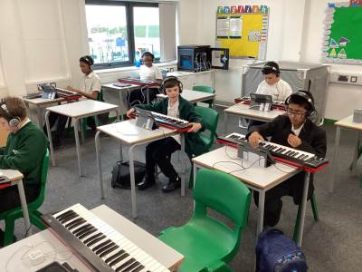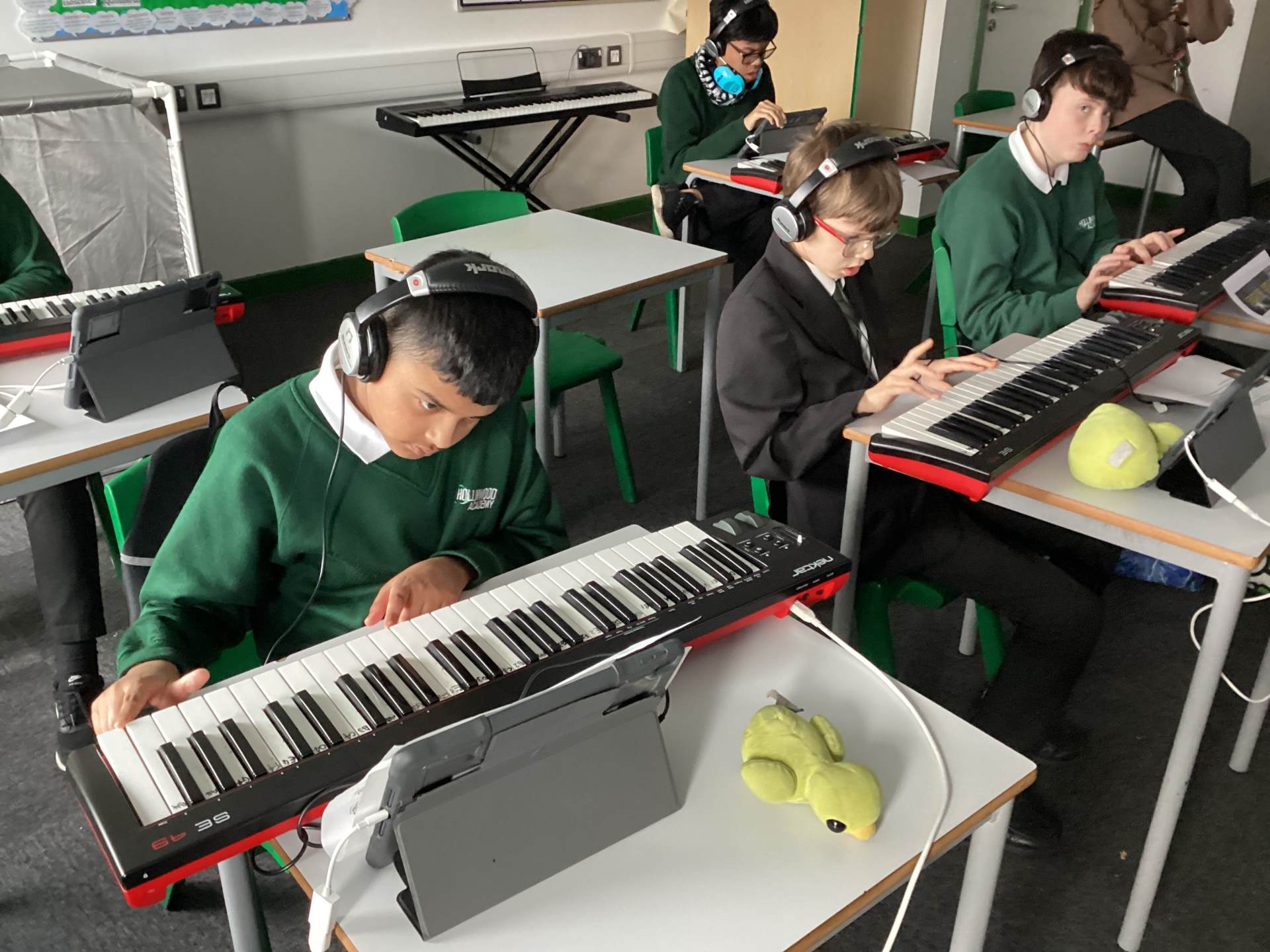 "This term Year 7 have been exploring creating their own musical ideas using Garageband, Chrome Music Lab and keyboards. We’ve listened to their pieces as a class and have been amazed at some of the fantastic creations they have made.