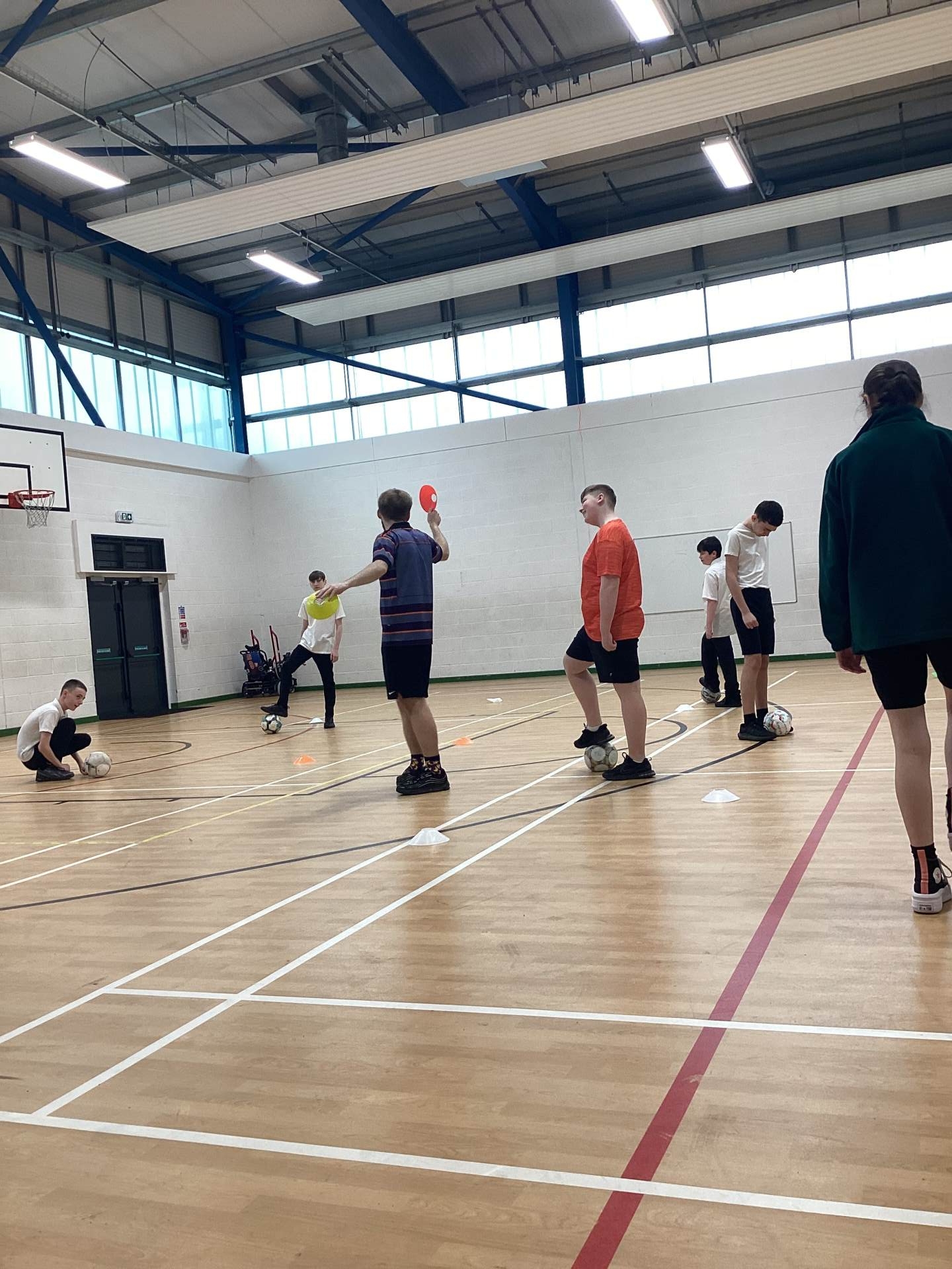 In PE, the class are currently doing football. They completed some passing drills before a small game.