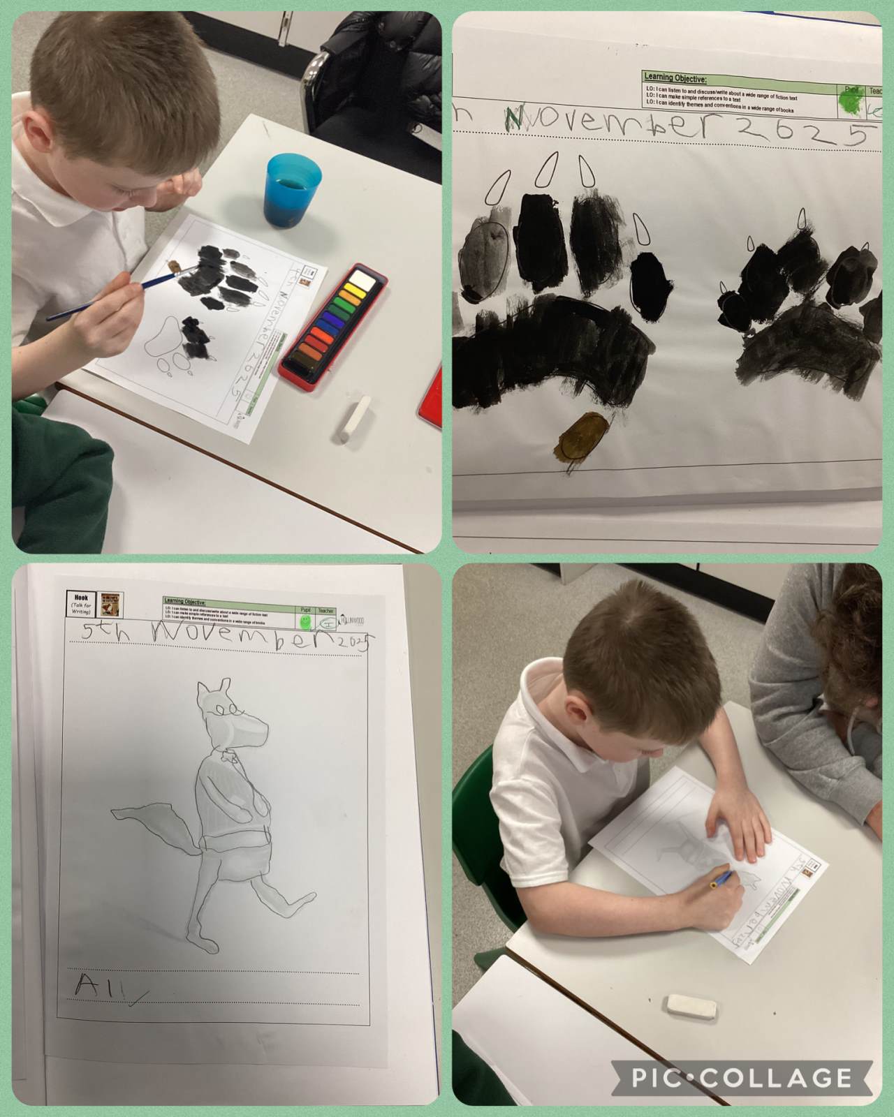 Our Talk for writing model text this half term is The True story of the Three Little Pigs. This week we have used our art skills as a hook to introduce the book and looked into the personification of the main character.