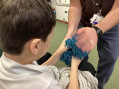 During our communication sessions, we continued the Bonfire theme by creating bright spray-bottle firework art and making delicious chocolate sparklers. Everyone used their preferred communication methods to make choices and requestS some of