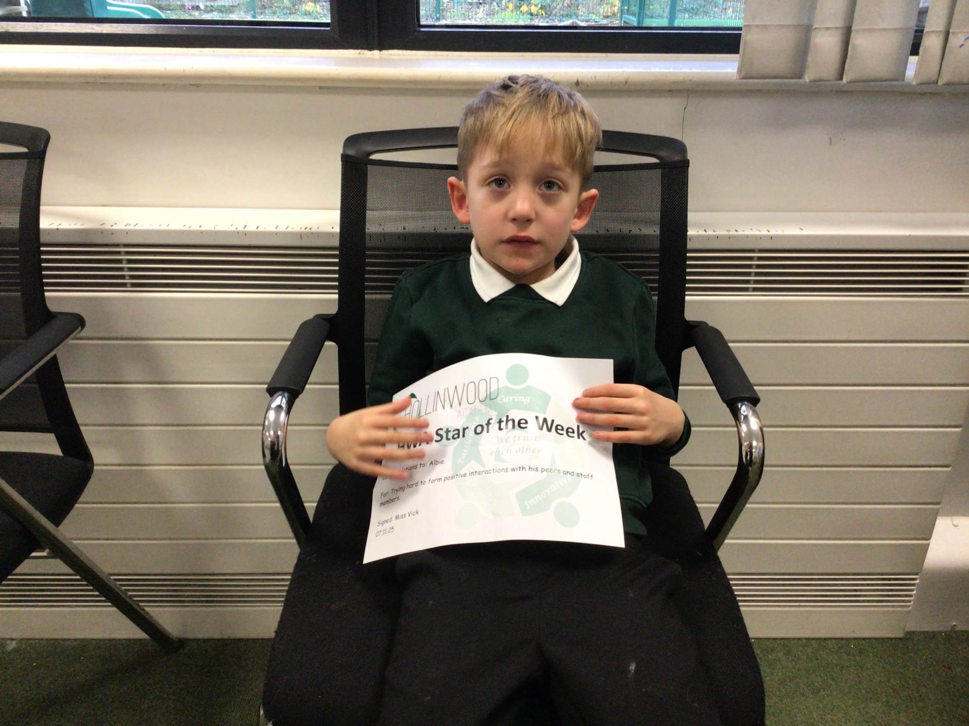 Miss Pietraszewska’ s STAR of the Week goes to Nevaeh for your wonderful engagement in phonics lessons, well done, Nevaeh.