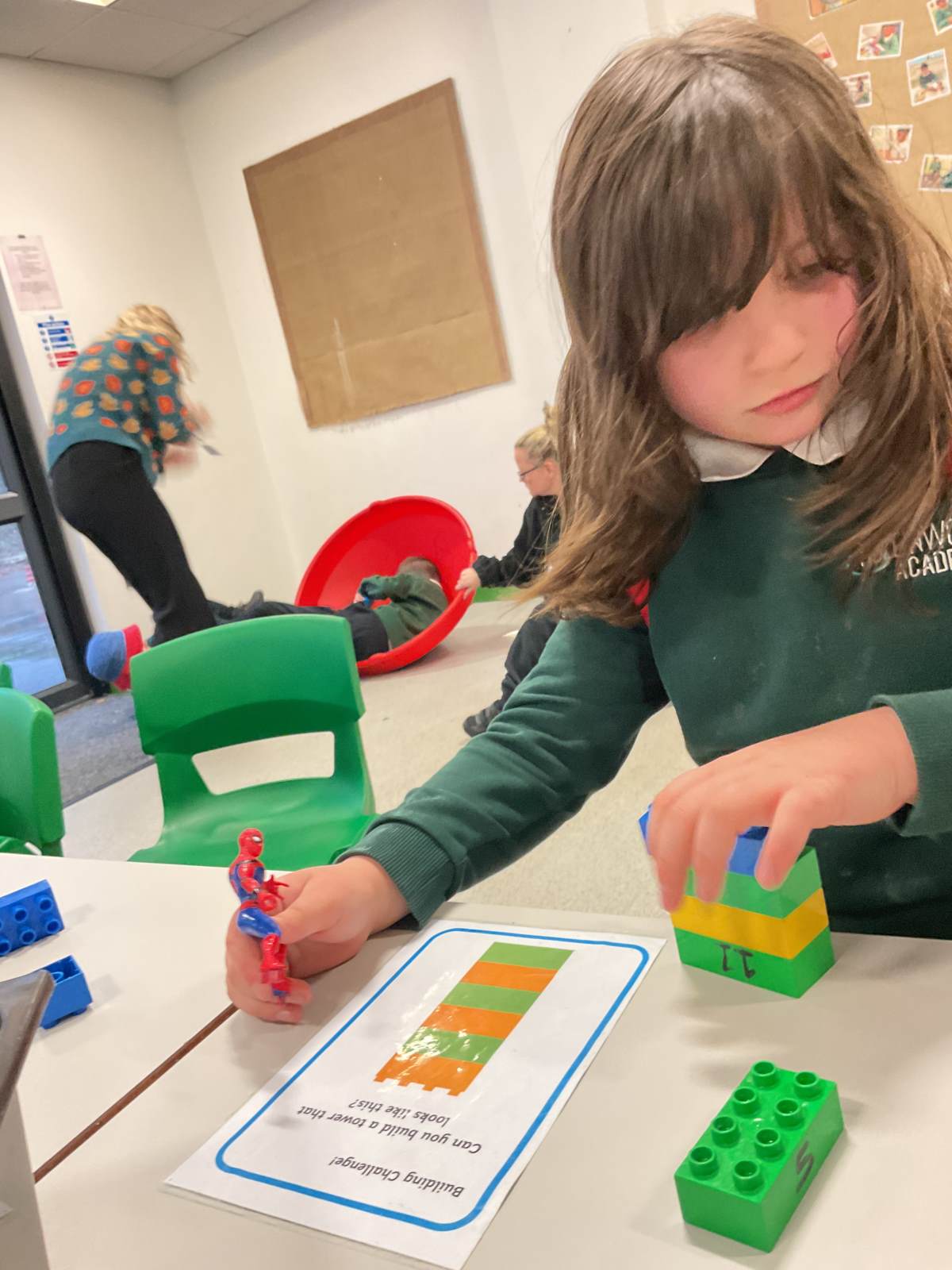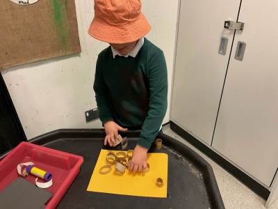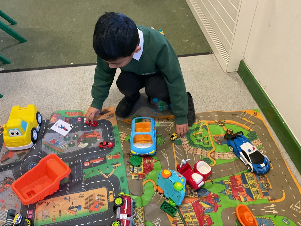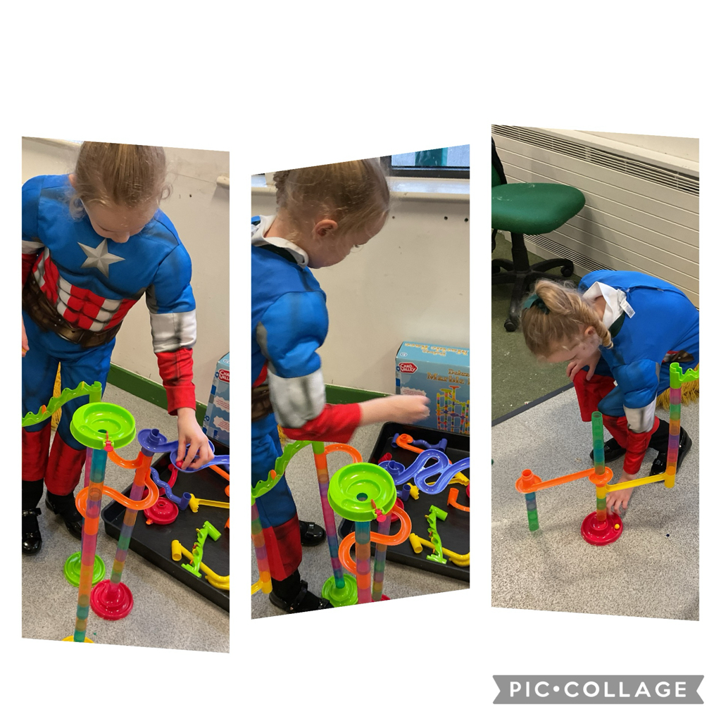 The curiosity lessons with building with blocks, dressing the bears, tracing chalk numbers outside using water and rolling balls ‘under’ homemade paper tunnels have proved a fantastic way to keep the children engaged and learning through play. A firm favourite during our curiosity lessons this half term has been dressing up for many of our class children!