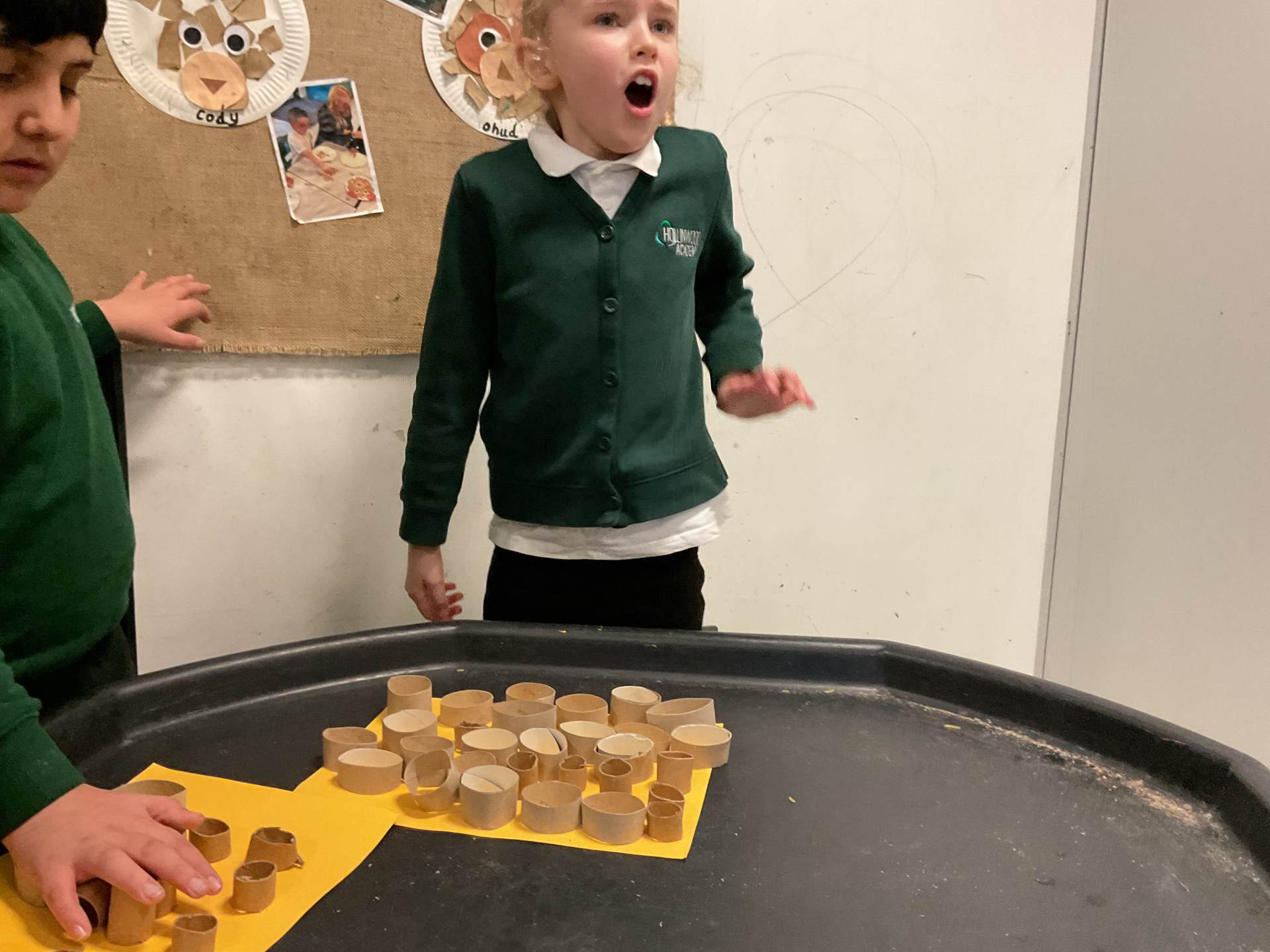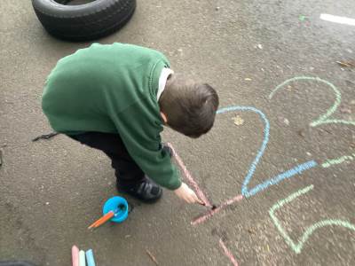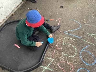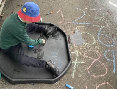 It has been wonderful to see how our everyday maths opportunities have been integrated into the activities that the children have encountered this week like George independently counting the animals during ‘preparation for learning’ time and tracing numerals with water outside.