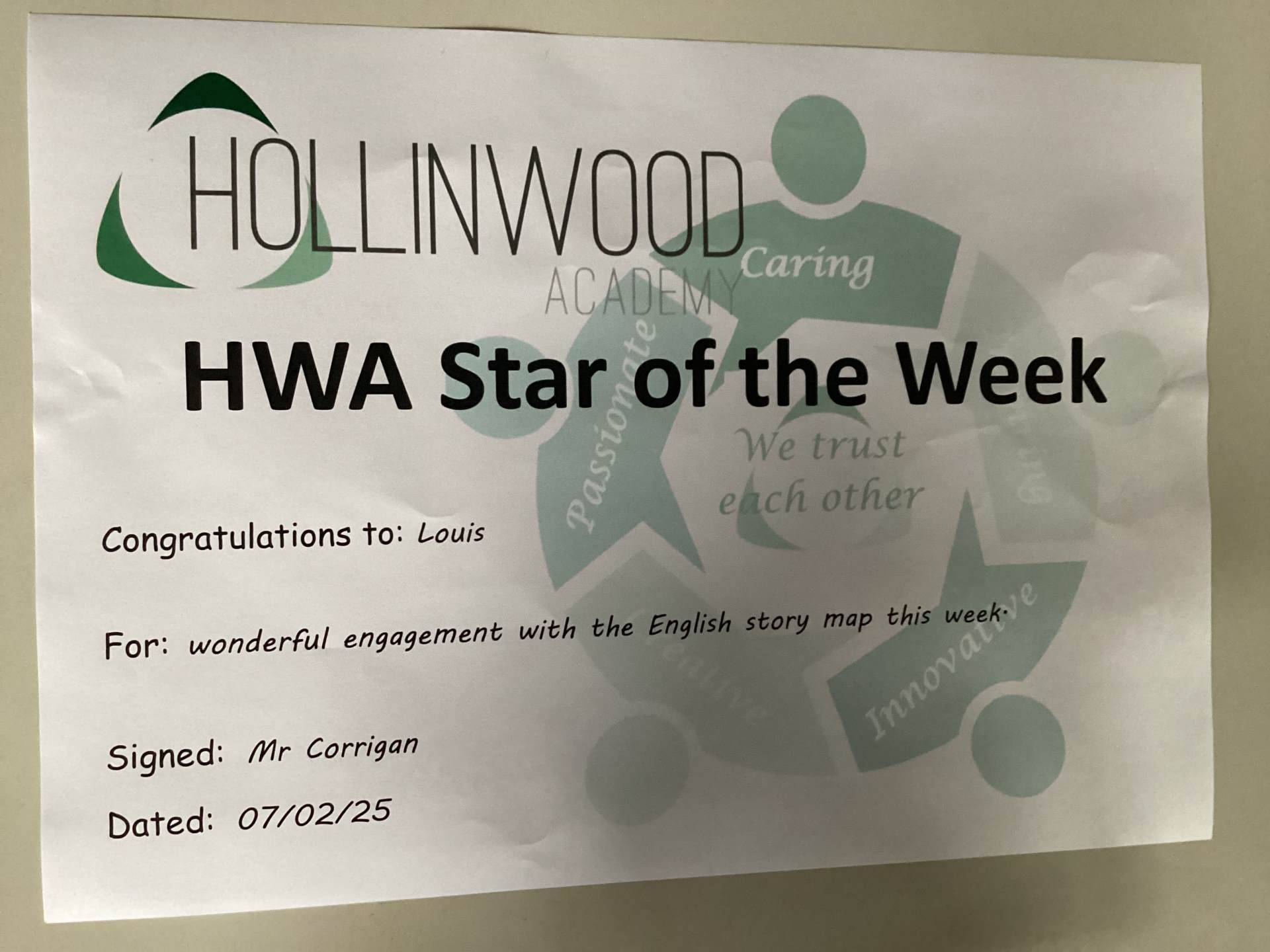 Mr Corrigan’s HWA We are Innovative star is Louis for wonderful engagement with the English story map this week.