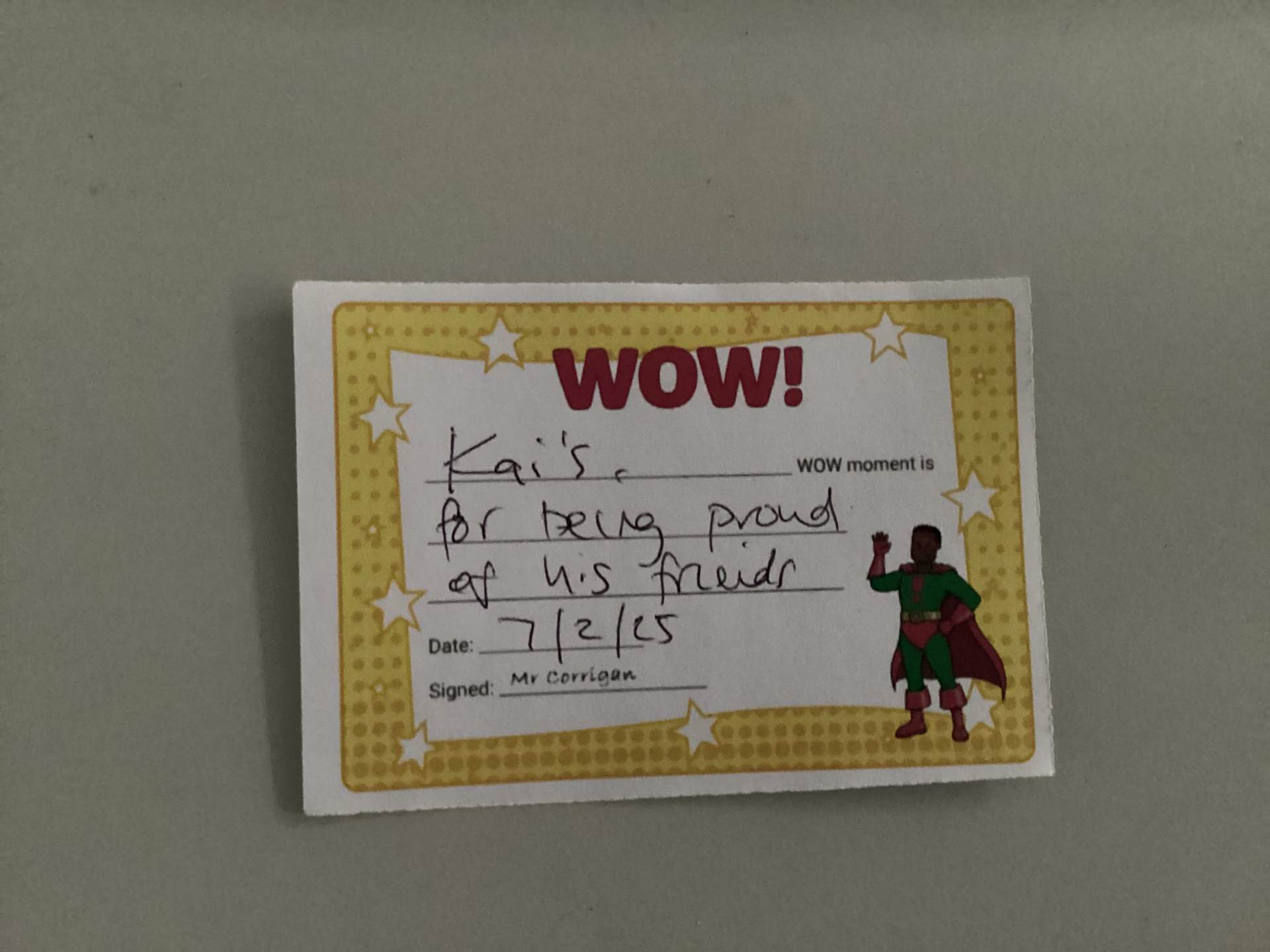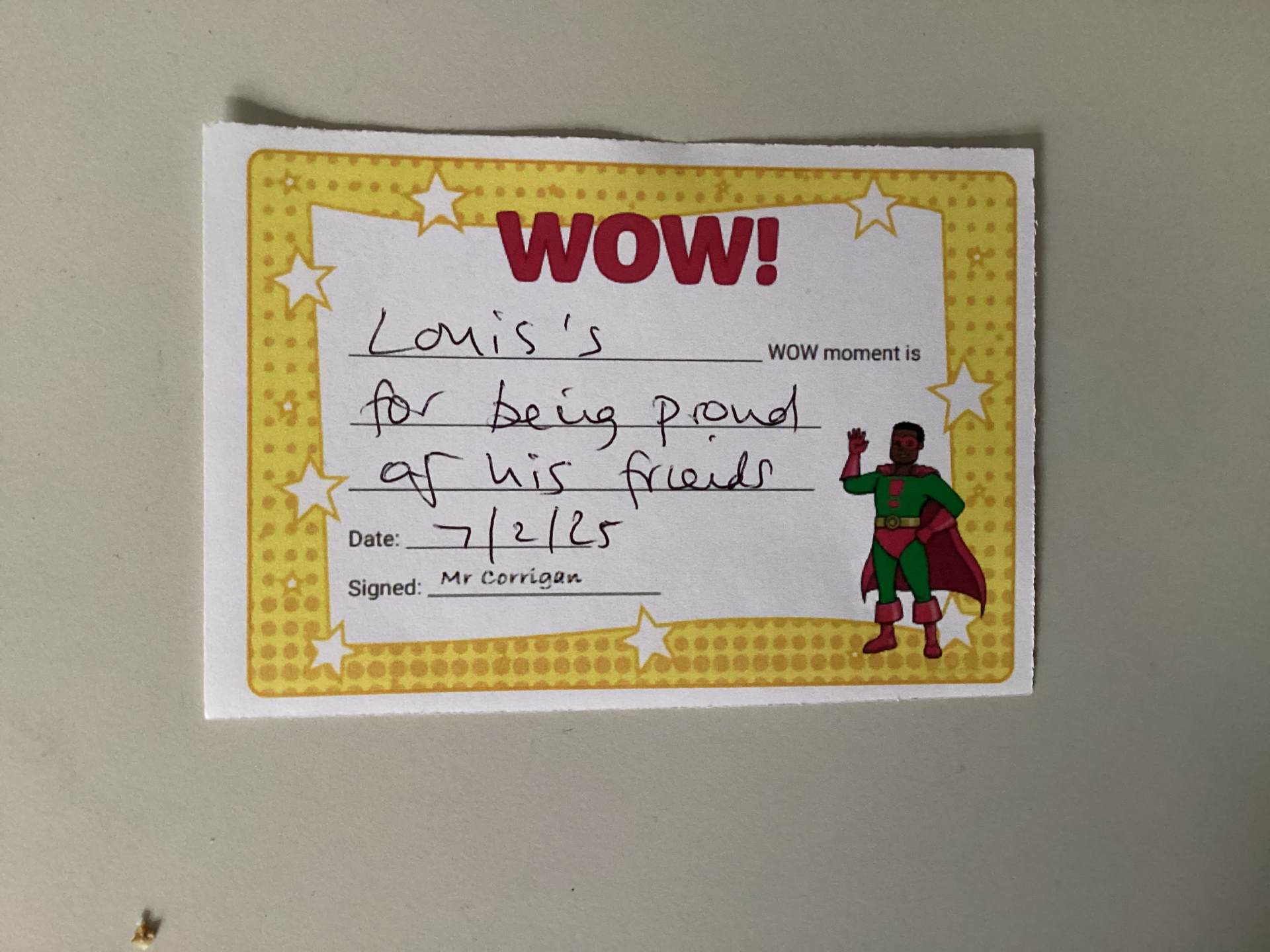 Mr Corrigan’s WOW moments go to George, Kai and Louis. Well done!