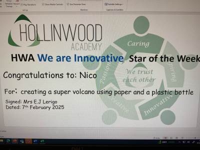 Mrs Lerigo’s HWA We are Innovative STAR is Nico for creating a super volcano using paper and a plastic bottle.