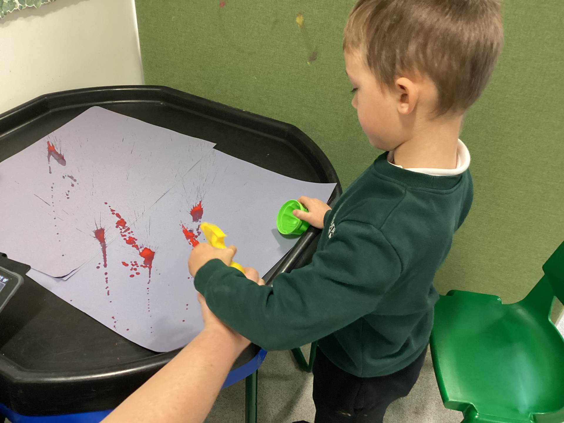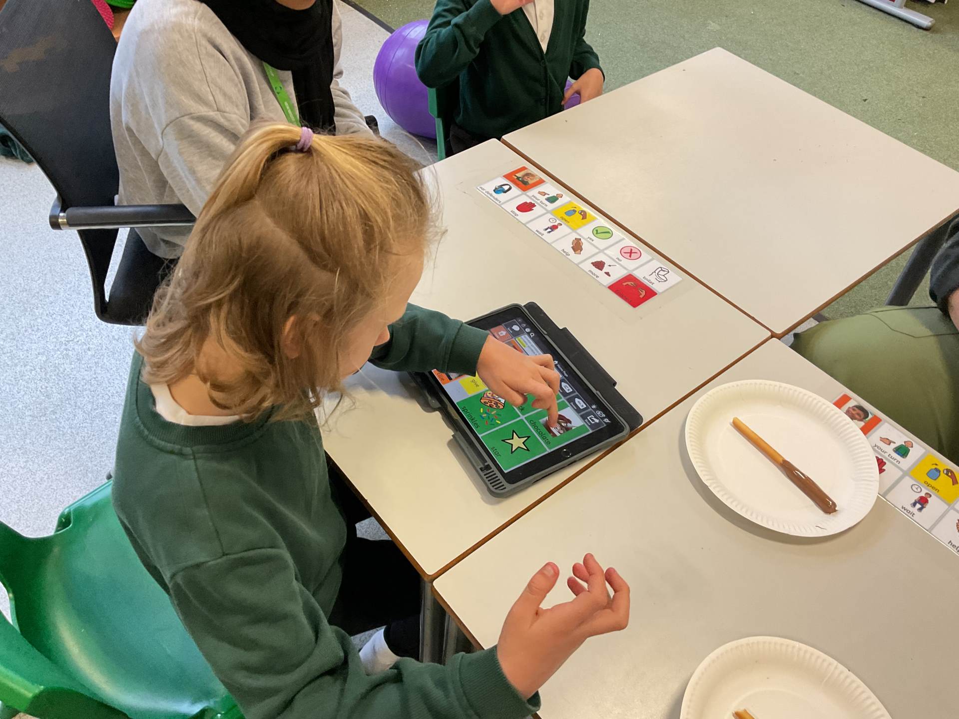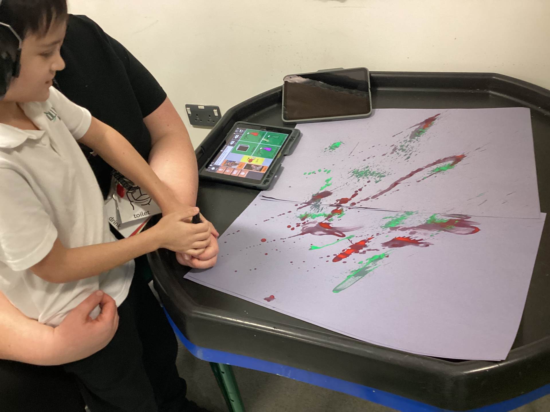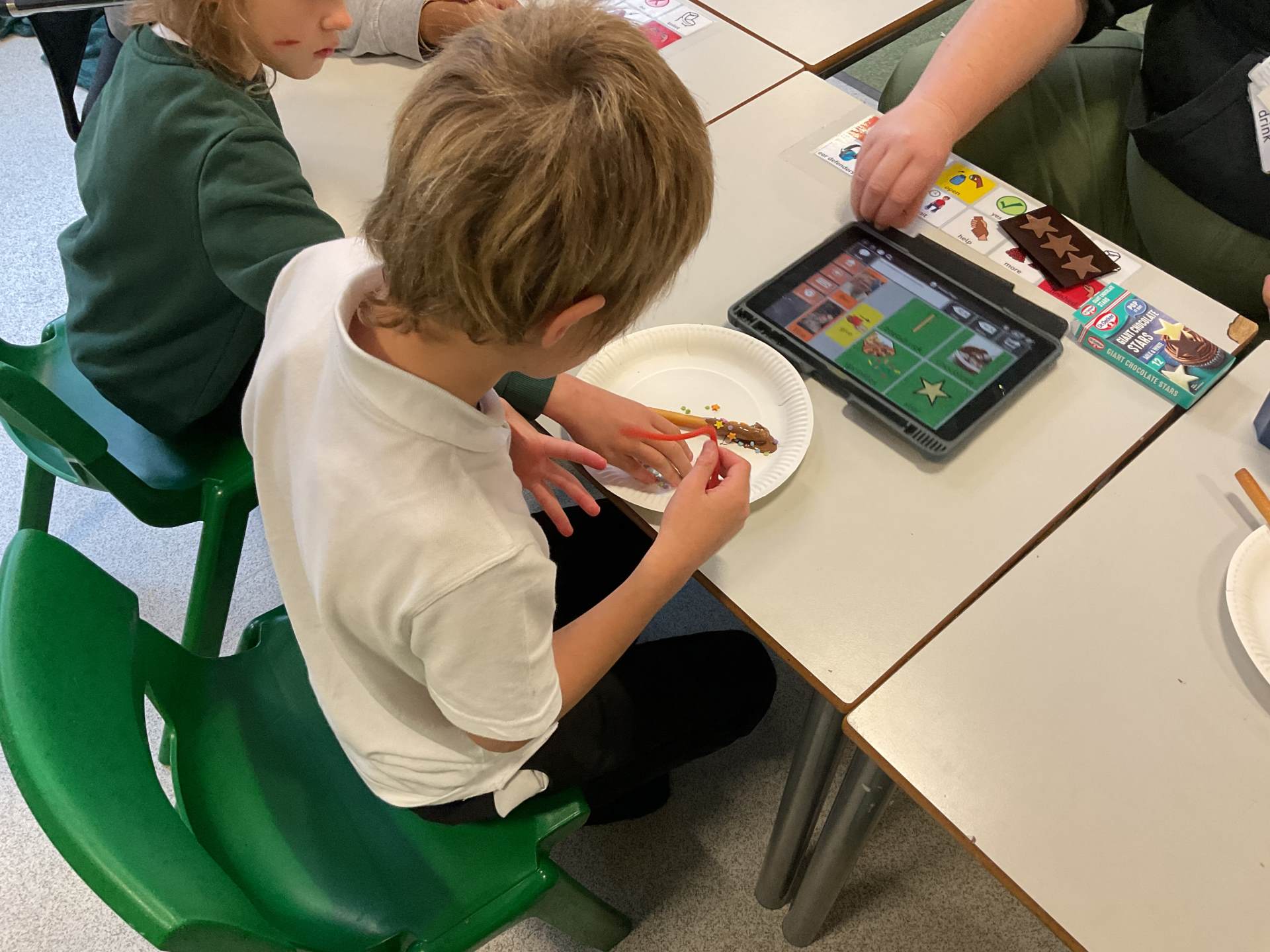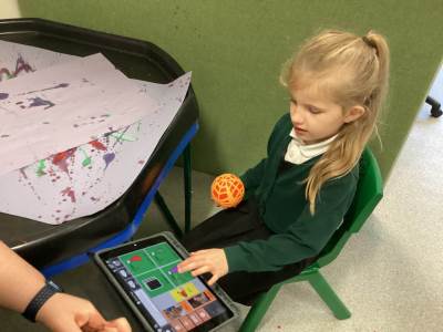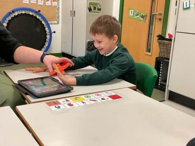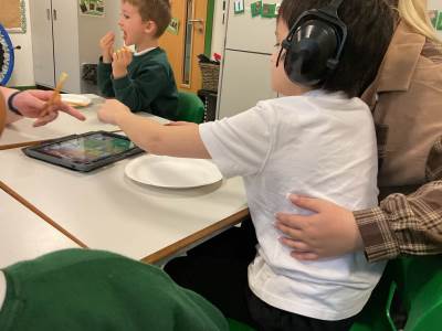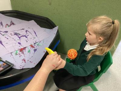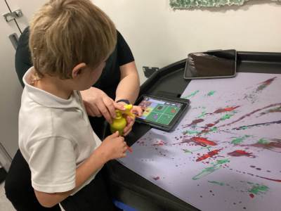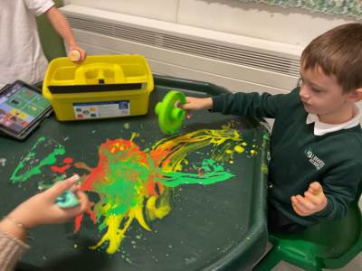 In our communication lessons this week we have been using an app on our iPads called TD Snap, we use this to help us to communicate and to request the items we need to complete a variety of different activities. We had a blast experimenting with squirting paint to create firework designs, using the app to select our favourite colours. Later in the week, we again turned to TD Snap to gather the ingredients for our delicious sparklers made from breadsticks and chocolate. The highlight, of course, was getting to eat our masterpieces - yum yum!