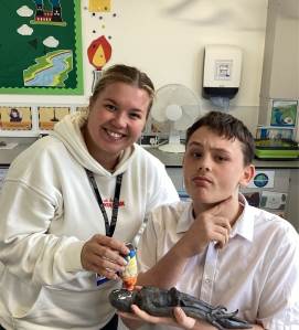 The Castleshaw walk was a perfect opportunity for the students to explore and learn together. They enjoyed investigating the area’s history, from ancient times to the present, while taking in the breathtaking views and refreshing breezes. Liam took the lead in crossing the steppingstones, with his classmates close behind. It was wonderful to see him embrace the moment, enjoying the company of his peers as they walked along the rural path, with Akeem following right behind. Akeem has not only been enjoying this camaraderie but is also excelling in lessons, particularly art, where he’s been creating drawings from images, he chose himself. Both he and Liam earned the pastoral award last term, a testament to their positive attitudes and social growth. They also love spending free time socialising with friends, strengthening the bonds they’ve built.