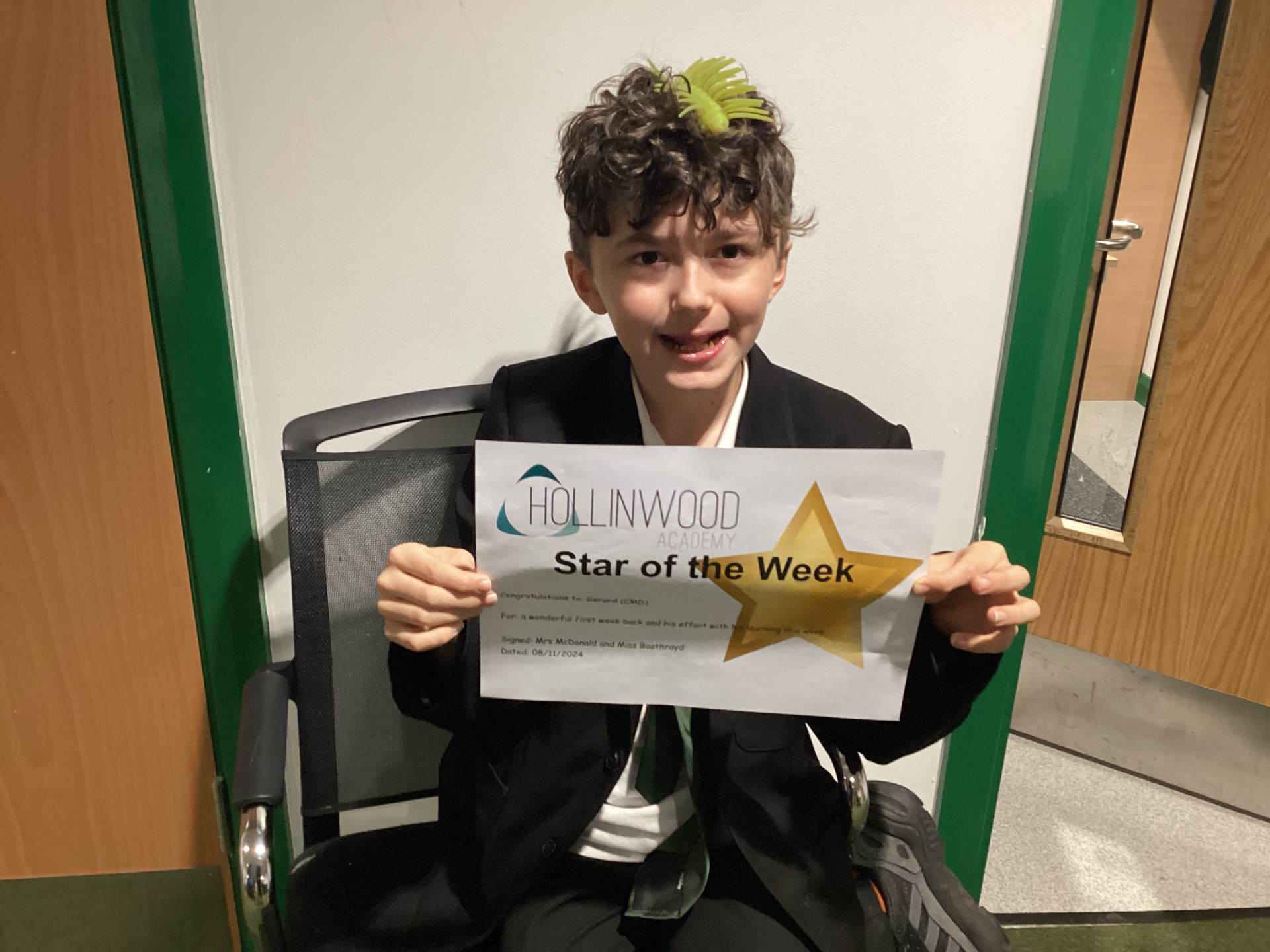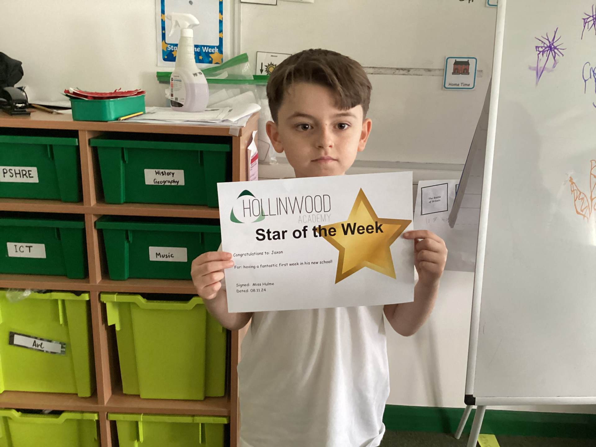 Miss Hulme’s STAR of the week is Jaxon for having a fantastic first week at his new school.