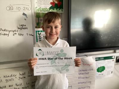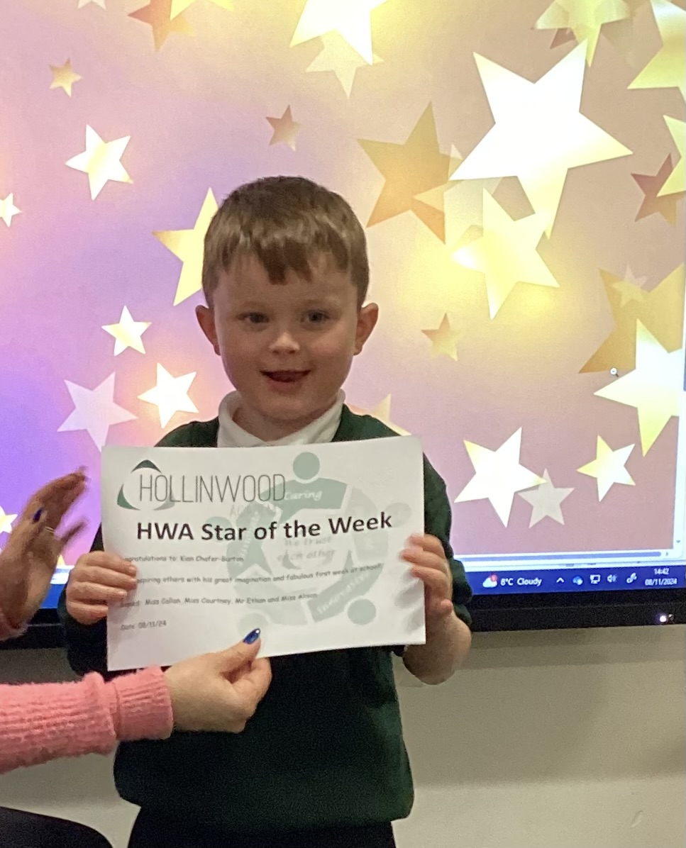 Miss Sutcliffe’s HWA We are Inspiring STAR is Kian for inspiring others with his great imagination and fabulous first week at school!