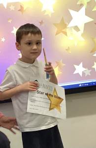 Miss Oakley’s STAR of the week is Harry for being so polite to friends and teachers.