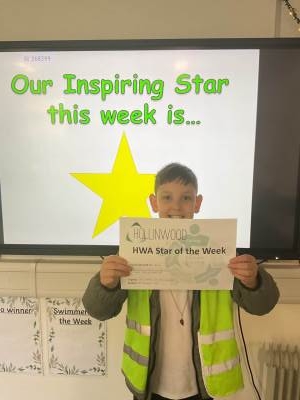 Mrs Quinn’s HWA We are Inspiring STAR is George for a great first week back after half term, listening to adults in class and responding well to transitions.