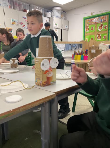 This half term we have started our new topic within Design Technology. This is all about structures and junk modelling. First we investigated different ways to attach things together, we used tape, glue, paper clips and stickers. Miss Emma created a cup monster to demonstrate the skills, then children had free reign to create anything that they wanted using the materials provided. We had a lot of fun.