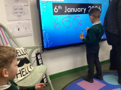 "Happy New Year, and what a great, new and fresh start we have had to our term so far. We started the week by celebrating the New Year by re-enacting the moment with Big Ben and the stroke of midnight. We sang the song auld lang syne, and all held hands and celebrated. We looked at the new number for the year and all had a go at writing the new number 2026.