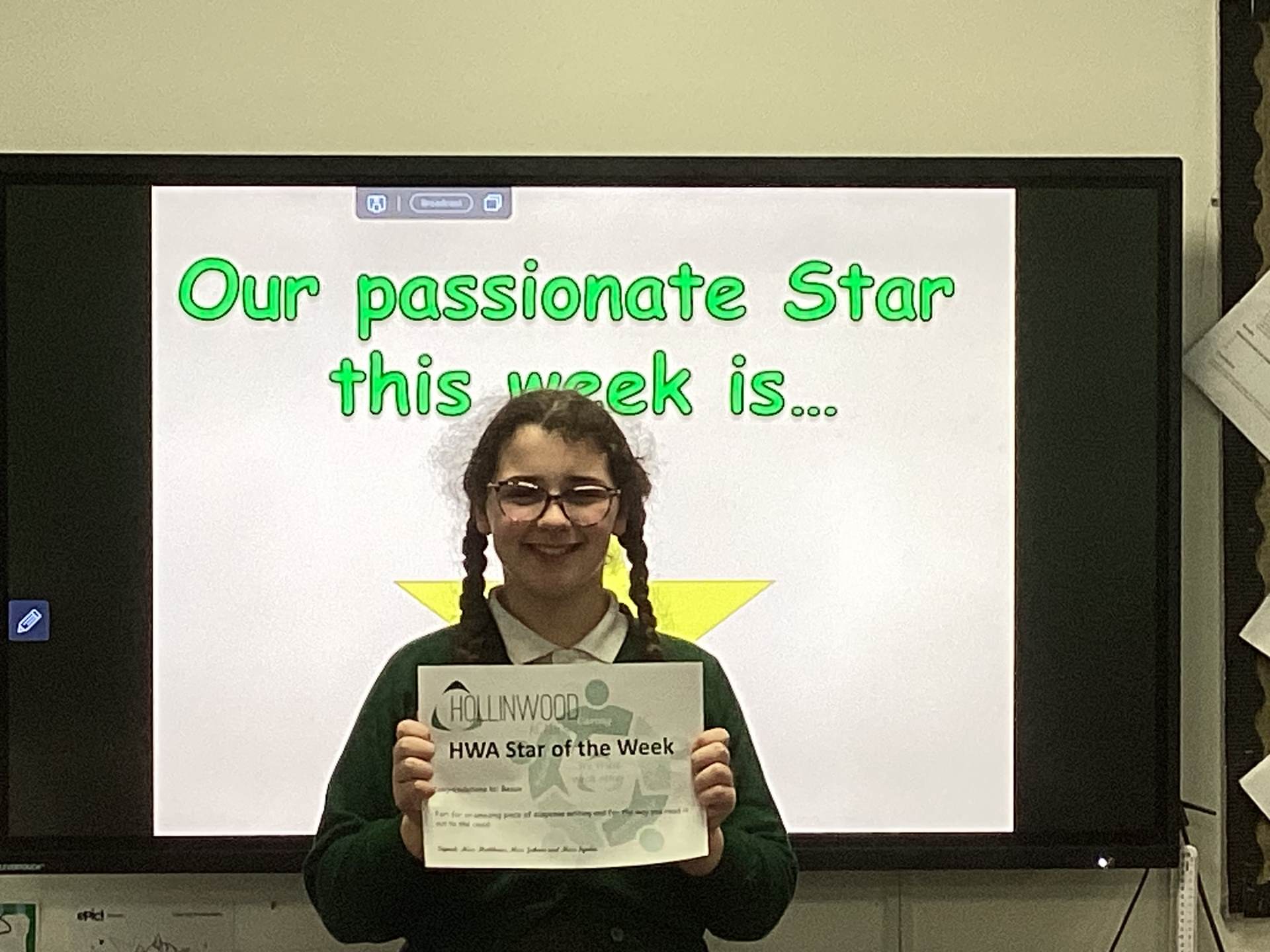 Miss Boothroyd’s STAR of the Week is Isla for being kind and caring towards her friends and teachers this week.