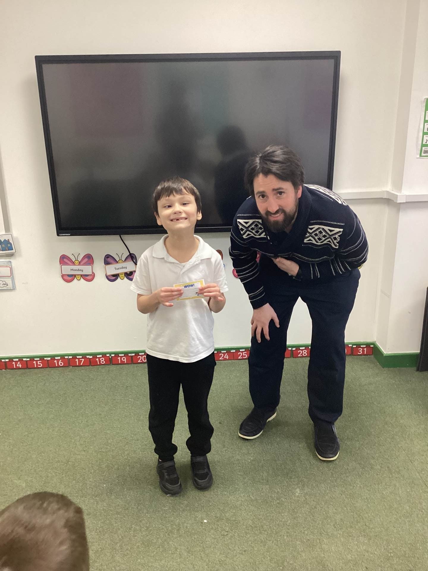 Miss Boothroyd’s HWA We Are Creative goes to Nico for having a fantastic first week back. Nico has completed some super work, made good choices and done good listening all week.