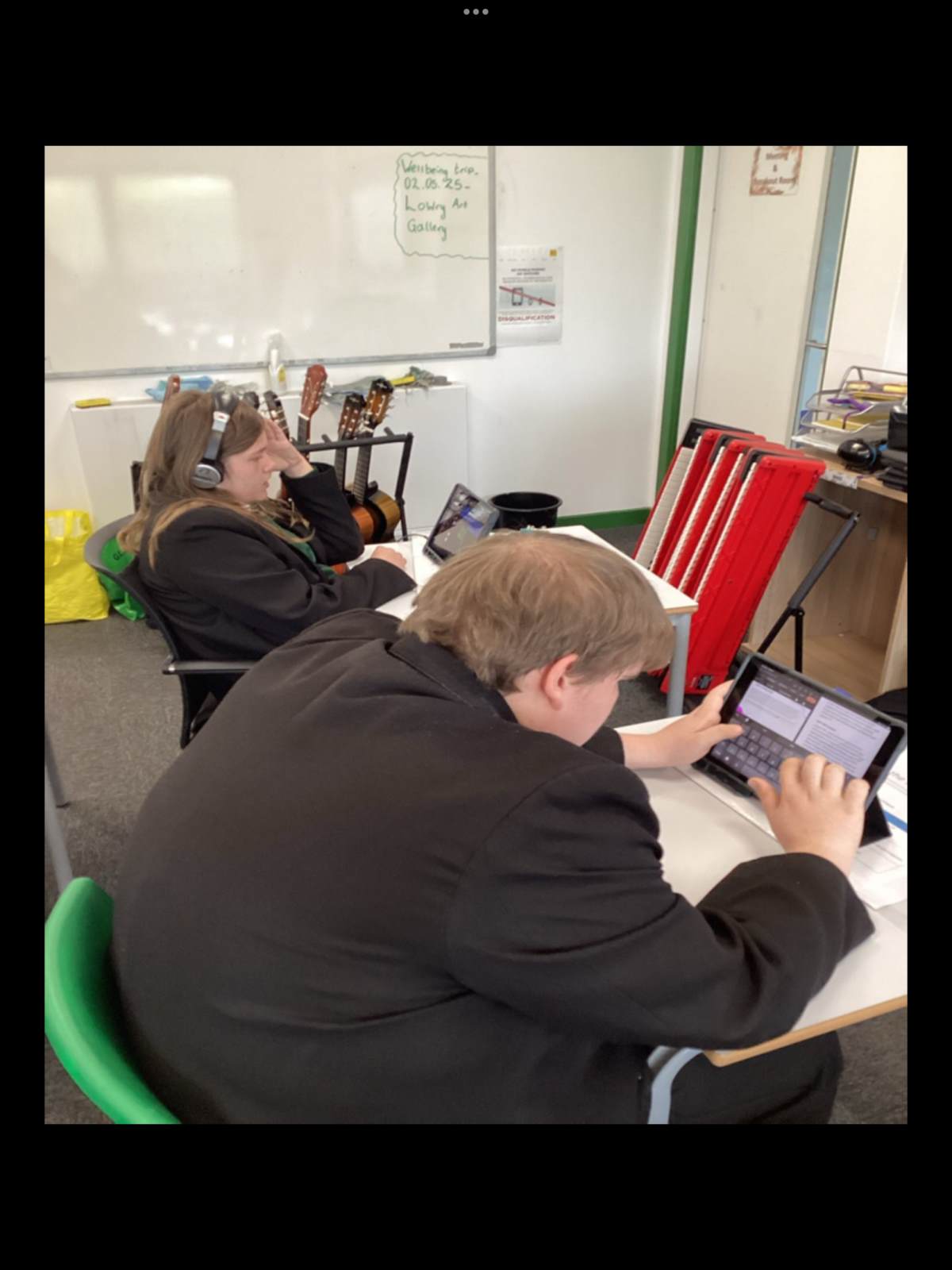 In music as part of the coursework the students have been researching different music composers. Thomas has been researching Rick Astley. Lucas has also been composing his own music and continuing to practise his ukulele. Connor has been practicing music on the keyboard, using a creative app, to the song Clint Eastwood by Gorillaz.